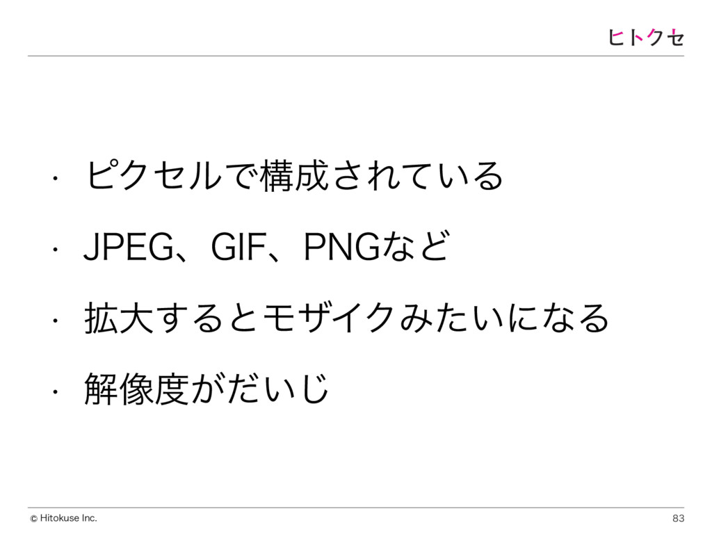 )JUPLVTF*OD w ϐΫηϧͰߏ͞Ε͍ͯΔ w +1&(ɺ(*'ɺ1/(ͳͲ w ֦େ͢ΔͱϞβΠΫΈ͍ͨʹͳΔ w