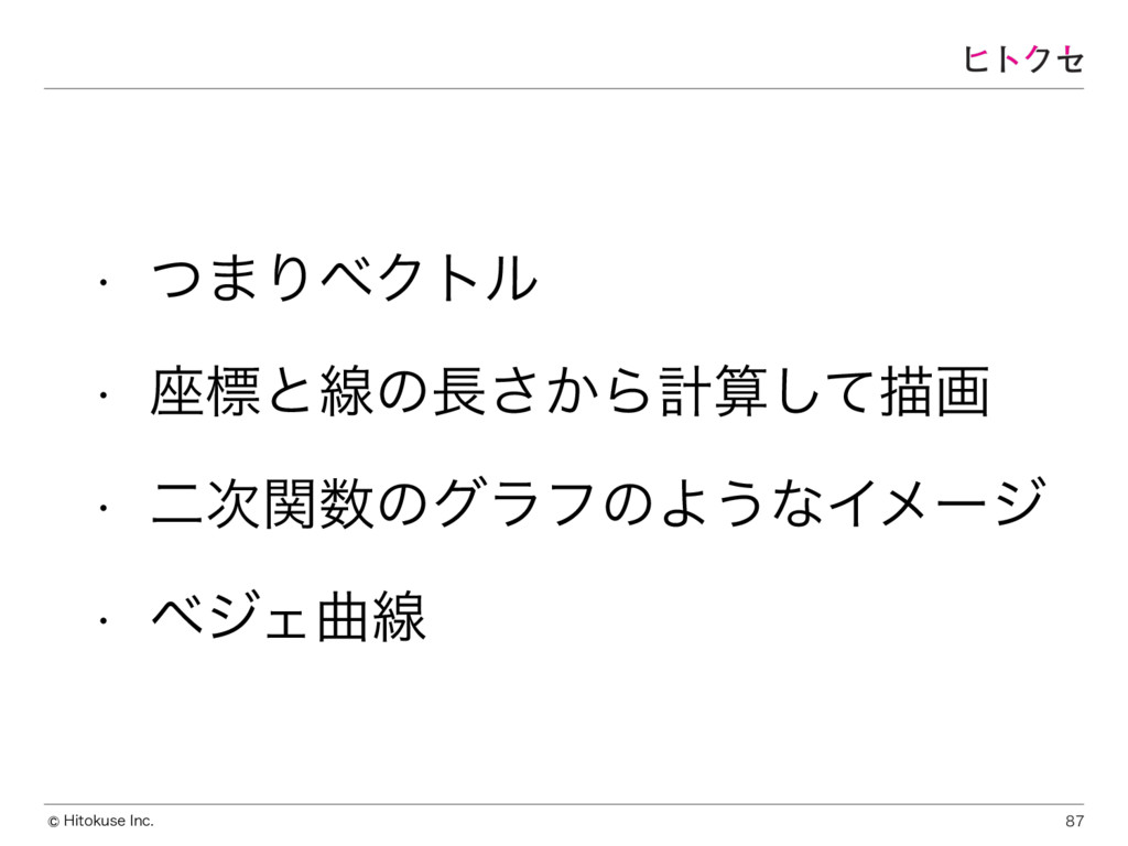 )JUPLVTF*OD w ͭ·ΓϕΫτϧ w ࠲ඪͱઢͷ͔͞Βܭࢉͯ͠ඳը w ೋ࣍ؔͷάϥϑͷΑ͏ͳΠϝʔδ w