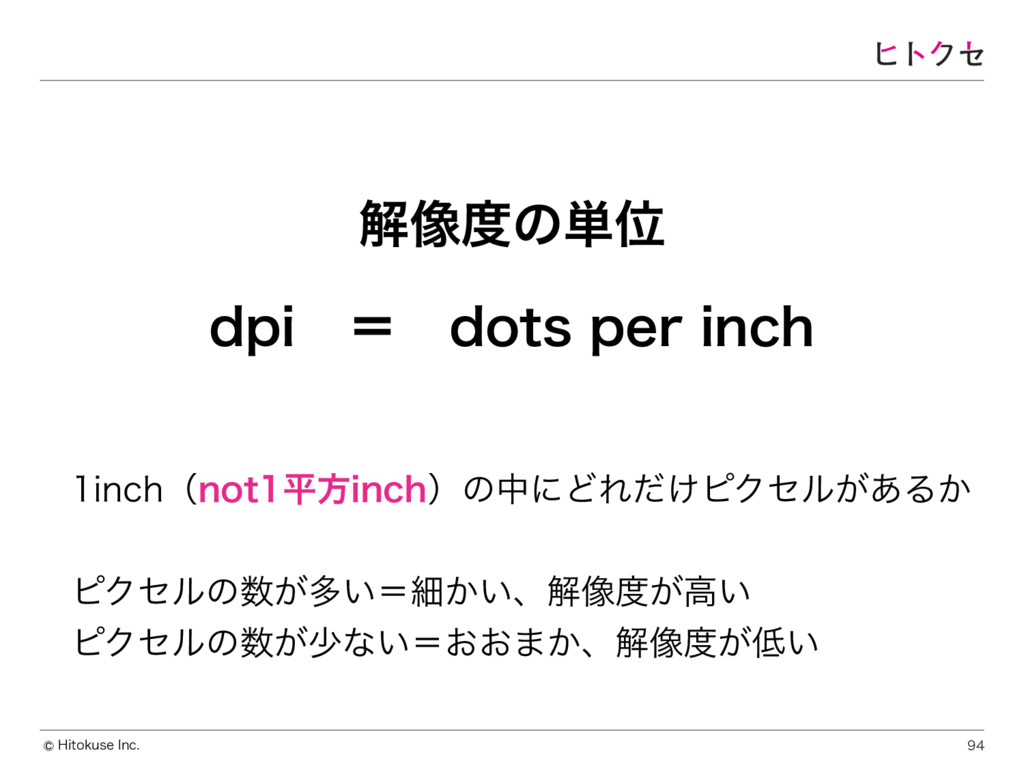 )JUPLVTF*OD JODIʢOPUฏํJODIʣͷதʹͲΕ͚ͩϐΫηϧ͕͋Δ͔ ϐΫηϧͷ͕ଟ͍ʹࡉ͔͍ɺղ૾͕ߴ͍ ϐΫηϧͷ͕গͳ͍ʹ͓͓·͔ɺղ૾͕͍ ղ૾ͷ୯Ґ EQJɹʹɹEPUTQFSJODI