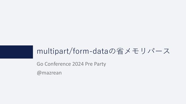 multipart/form-dataはファイルのアップロード時などによく使用されるContent-Typeです。 しかし、Go言語では標準ライブラリmime/multipartでのパースではメモリ効率が悪化しがちです。 本発表では、ストリーム処理により文字通り桁違いのメモリ効率を実現したライブラリFormStreamを紹介します。