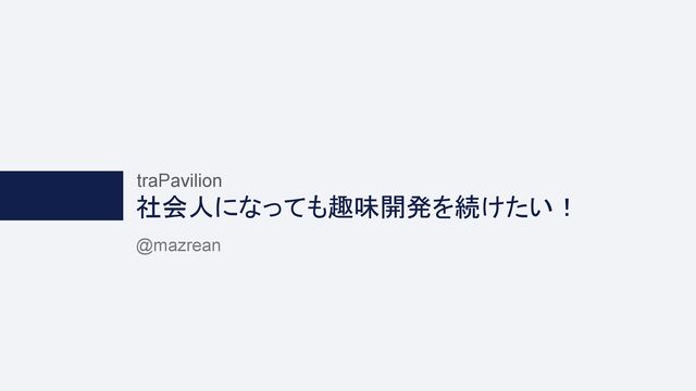 社会人になると自由に使える時間は大きく減ります。それでも趣味開発を続けたい!そんな人のために自分の経験を基に、自分の考える趣味開発を続けるための秘訣について話します。 --- 東京科学大学デジタル創作同好会traPの10周年イベントtraPavilionでの登壇資料です。 イベント: https://trapavilion.trap.show/