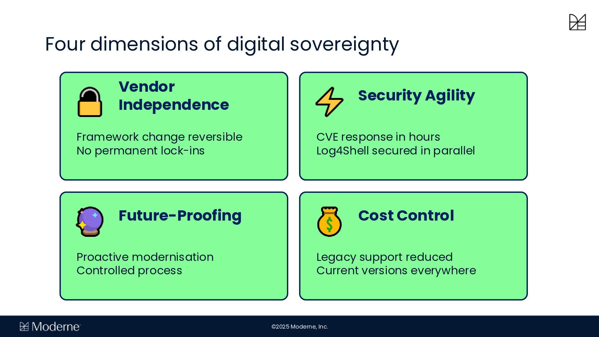igitale Souveränität ist der Schlüssel für moderne Unternehmen, um sich gegen politische und wirtschaftliche Unsicherheiten zu wappnen. Um echte digitale Souveränität zu erlangen, müssen Organisationen die Kontrolle über ihren Technologie-Stack zurückerlangen und Beweglichkeit gewinnen. Oft werden die notwendigen Anpassungen aufgrund fehlender Ressourcen und Kenntnisse jedoch zurückgestellt.