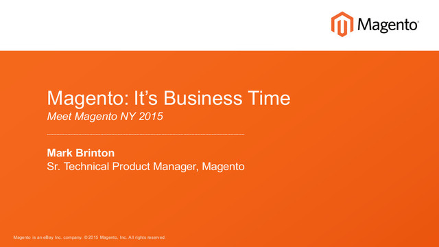 eBay Enterprise / Magento rated as “Strong Performer” in 2015 Forrester Wave for B2B Commerce Suites • “…a low-cost, highly customizable solution for firms that want to develop a B2B engagement platform” • Robust set of partners with B2B knowledge and Magento expertise • Demonstrated capability to deliver complex implementations • New B2B site for merchants magento.com/b2b