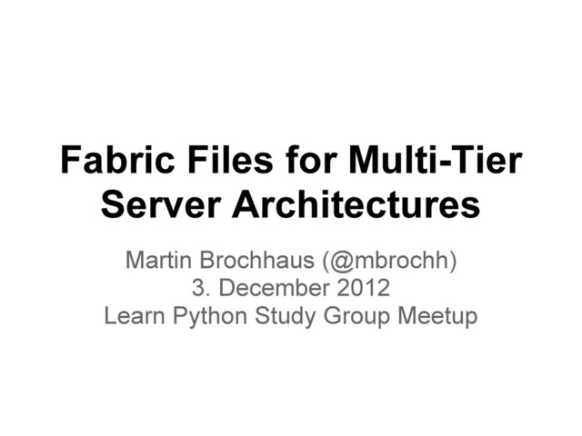 (2.5 or higher) library and command-line tool for streamlining the use of SSH for application deployment or systems administration tasks. • pip install Fabric