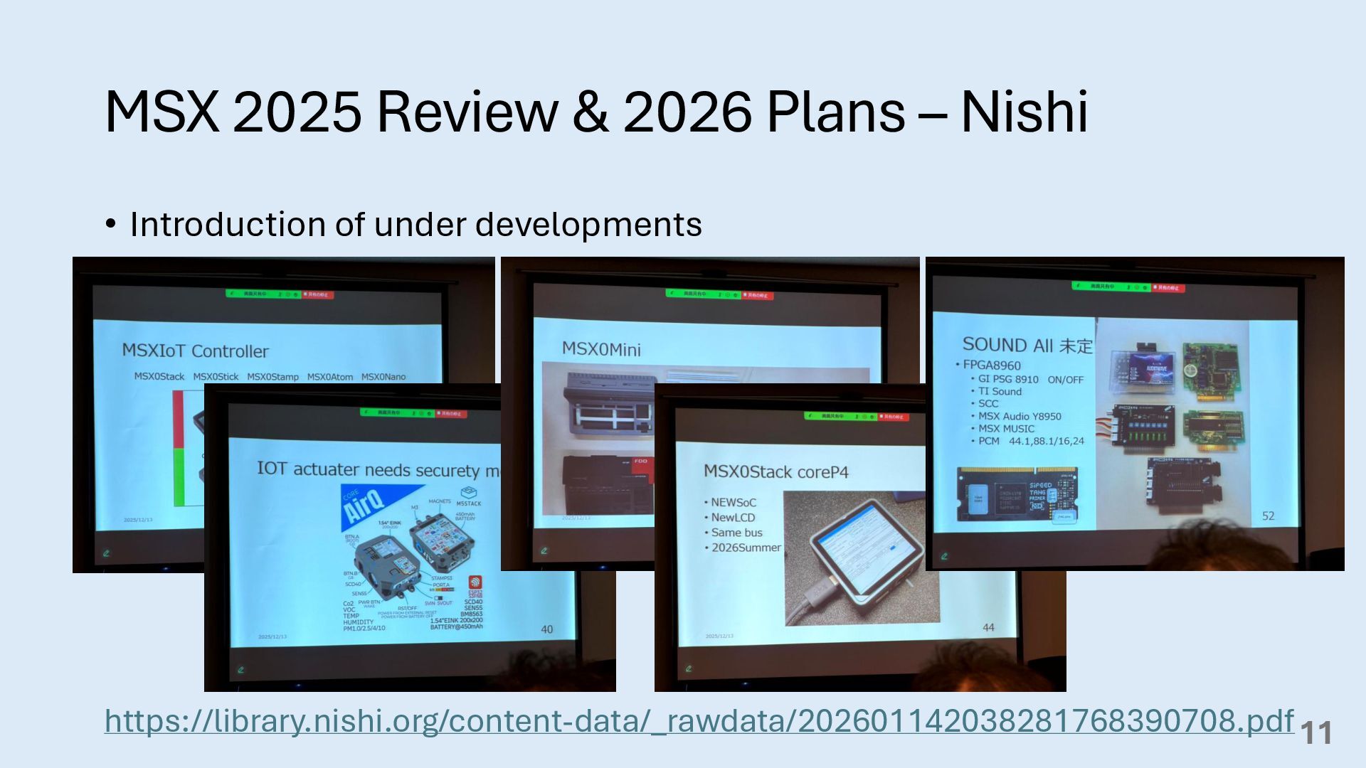 and MSX3 • MSX2++ not capable of LLM • Enjoy AI training data • Enjoy AI programming • MSX3 hard to integrate AI on Linux • Evaluation various LLM chips • MSXxSC, PCIe form factor • Development on AI SDK https://library.nishi.org/content-data/_rawdata/202601142038281768390708.pdf 10