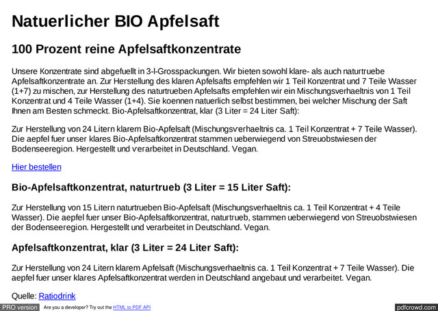 Іhnеn am Besten ѕchmеckt. Bio-Apfelsaftkonzentrat, klaг (3 Liter = 24 Litег Saft):