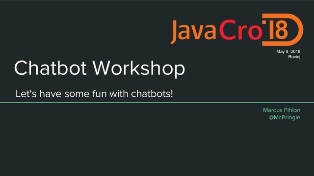 A lot of companies are investing in chat bots. In this workshop, we will develop a fully functional chat bot from scratch with support for formatted messages, photos, documents, locations, buttons, custom keyboards and more. No slides, just code – and a lot of fun…