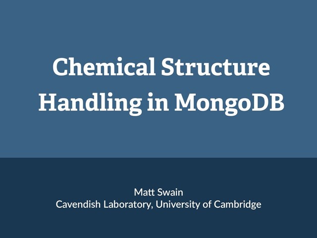use MongoDB for a chemical database • Comparable performance to PostgreSQL • Use sparse, unfolded fingerprints for best performance • Poten:al for horizontal scaling for huge databases 25