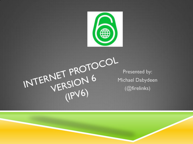 A very small introduction to IP version 6 presented by Michael Dabydeen to the 2nd Year Students in the CSI 2103 class at the University of Guyana Berbice Campus, on Wednesday Nov 7th, 2012
