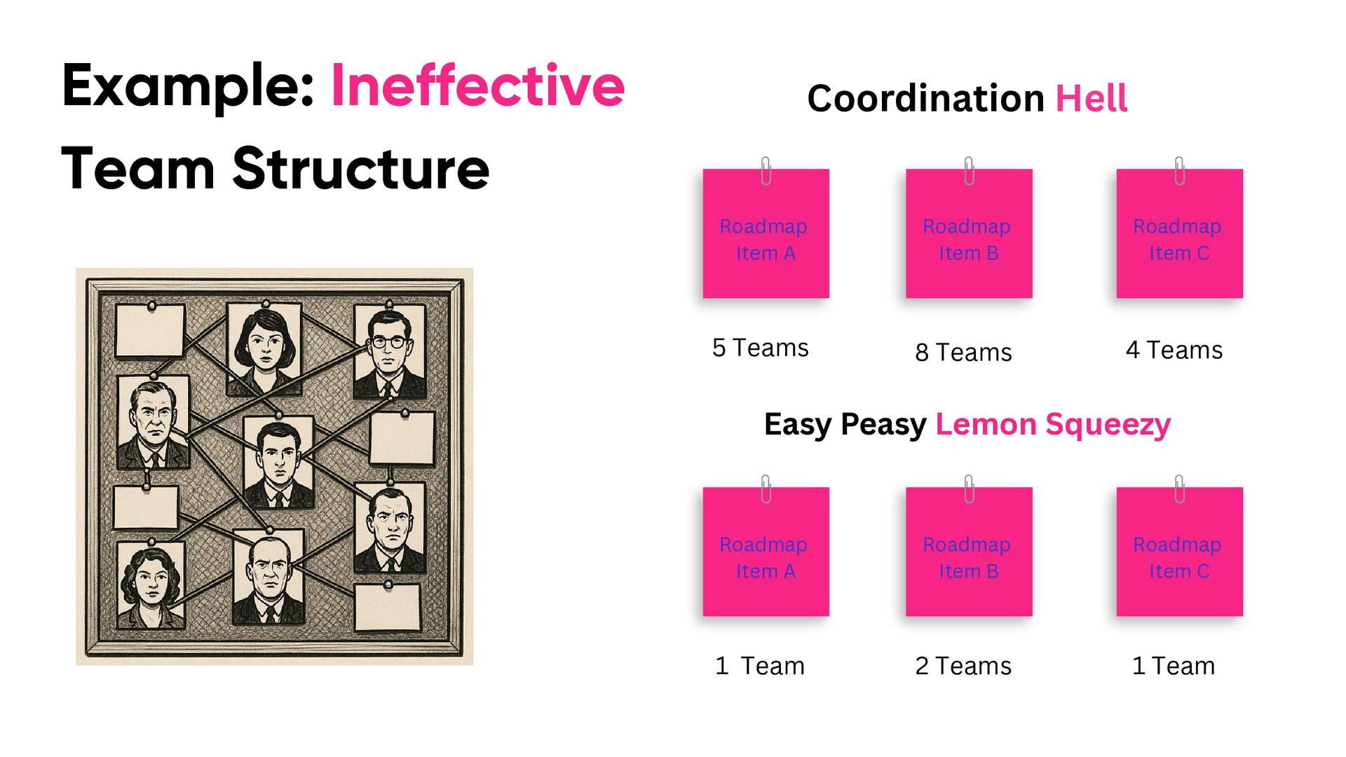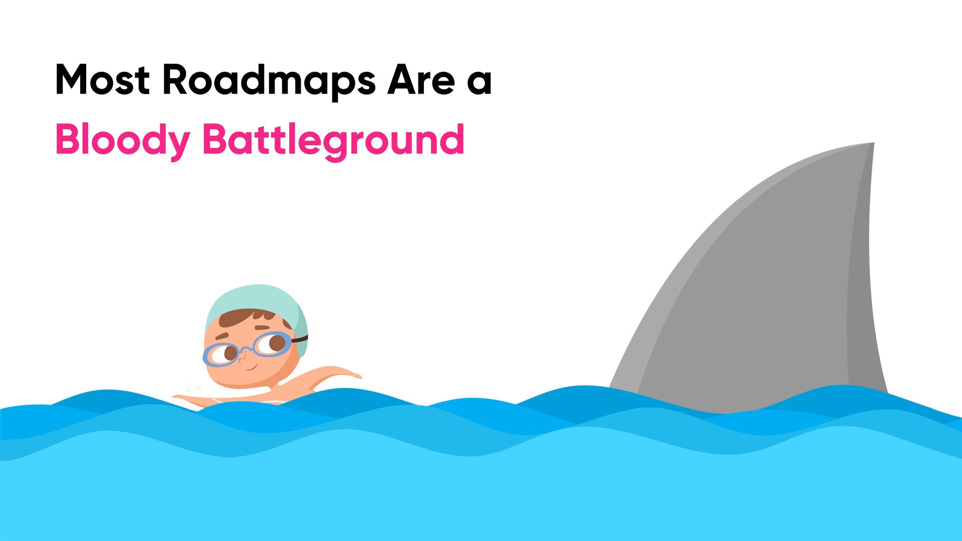 Your roadmap exposes your organizational flaws. The more bloody red your roadmap becomes, the more sharks and internal obstacles are present in your organization that can make delivering the roadmap nearly impossible.