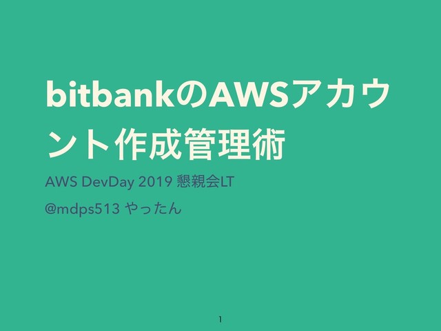 bitbankͷAWSΞΧ ϯτ࡞ཧज़ AWS DevDay 2019 ࠙ձLT @mdps513 ͬͨΜ