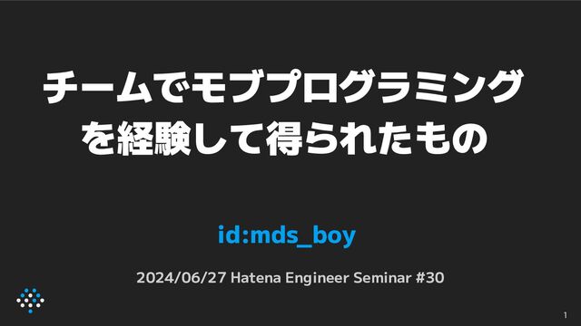 チームでモブプログラミング を経験して得られたもの id:mds_boy 2024/06/27 Hatena Engineer Seminar #30 1