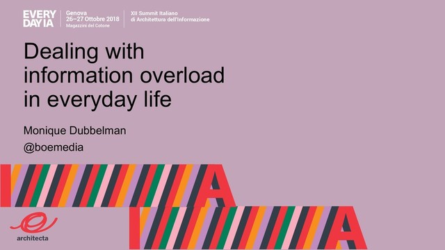 This talk discusses the role of information architecture in the information age: how can we help people deal with information overload? And how can we help them easily filter and distinguish what information is relevant and important?