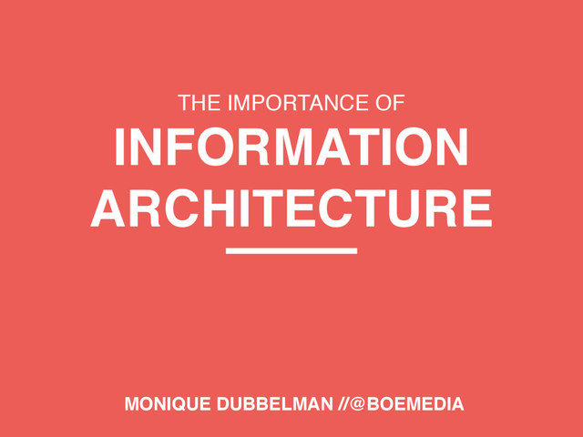 THE IMPORTANCE OF INFORMATION ARCHITECTURE MONIQUE DUBBELMAN //@BOEMEDIA