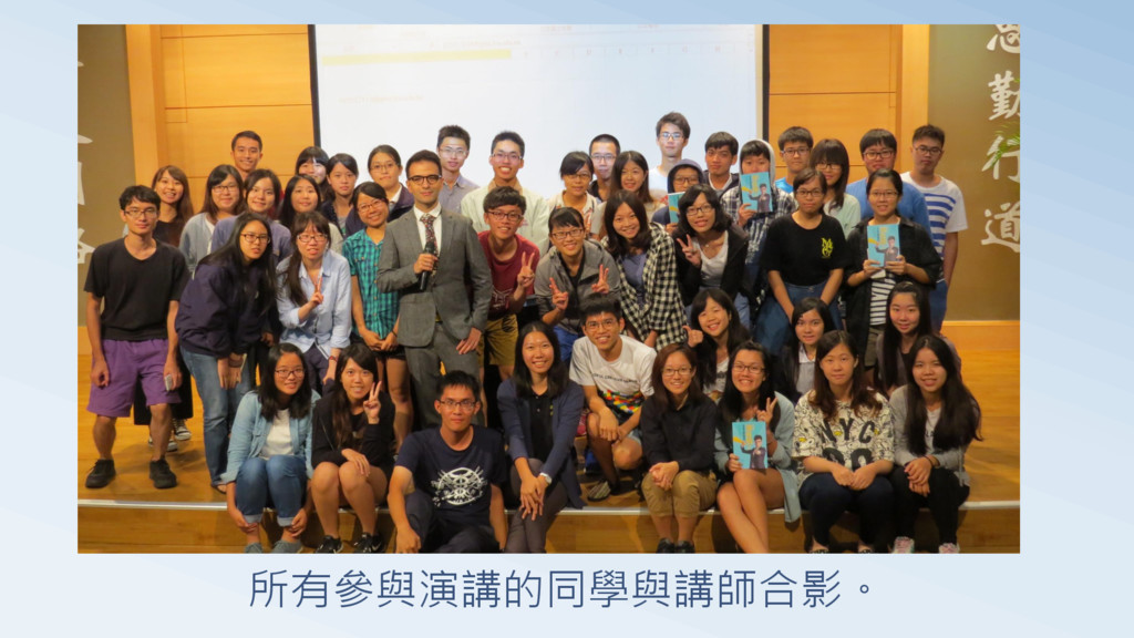 • 活動日期:105年10月29日 • 活動時間:14:00~16:00 • 活動地點:250B • 配合課程:無 • 參與人數:學生49人