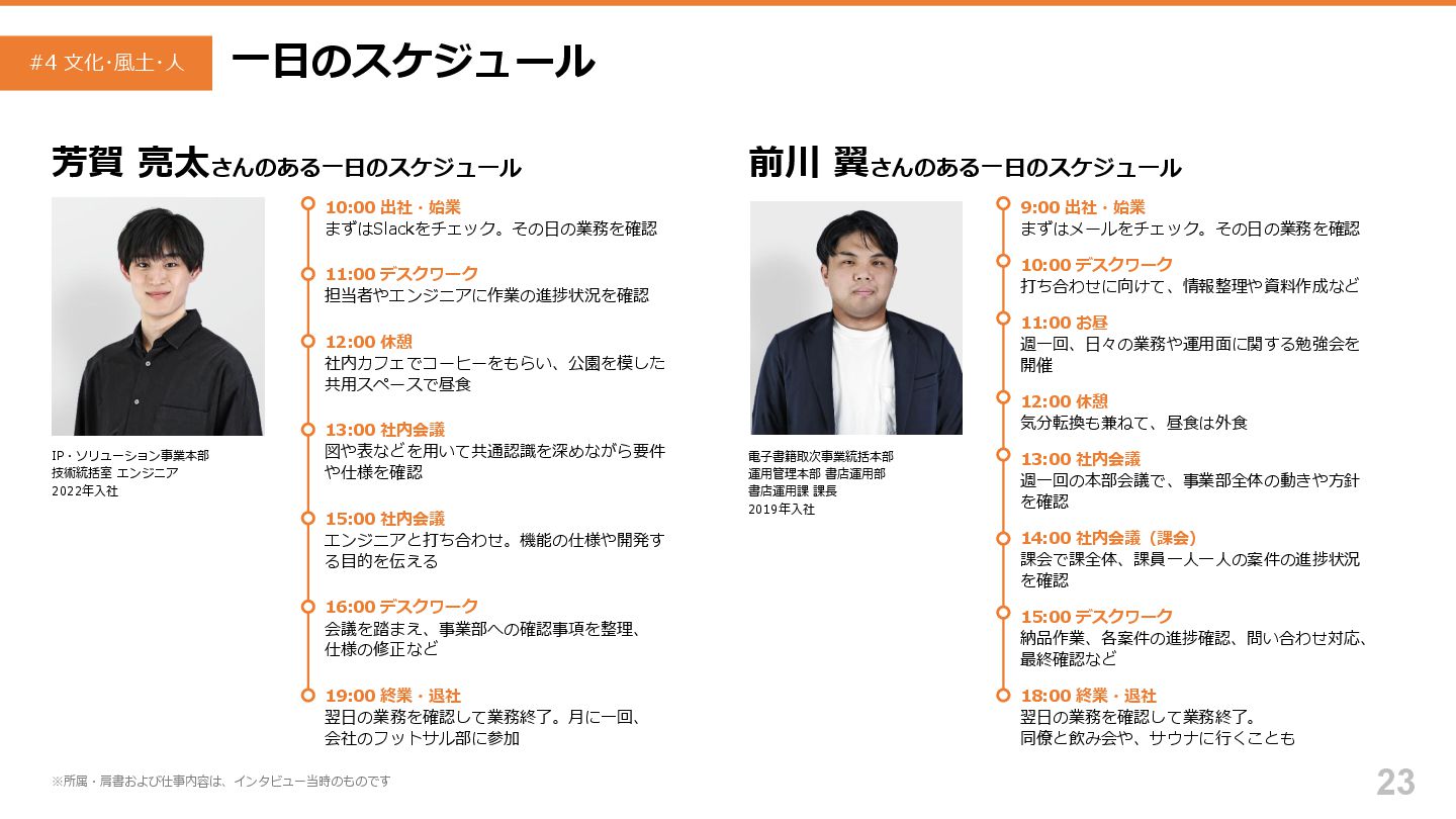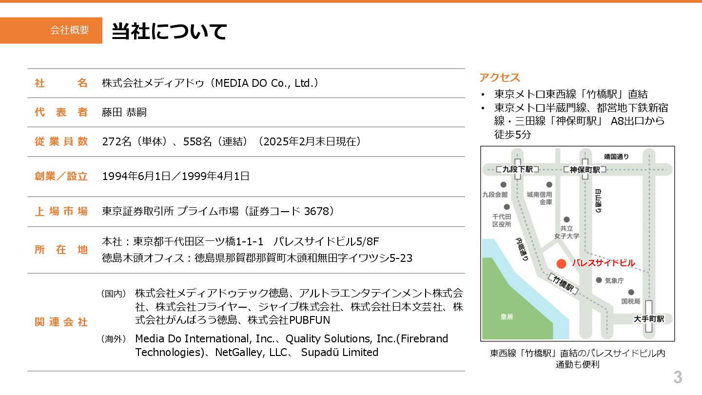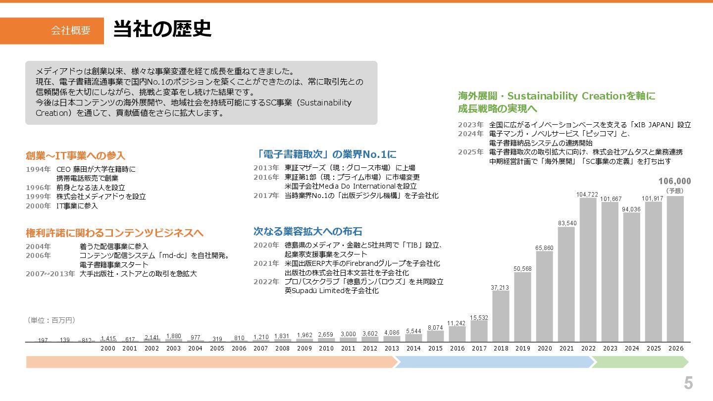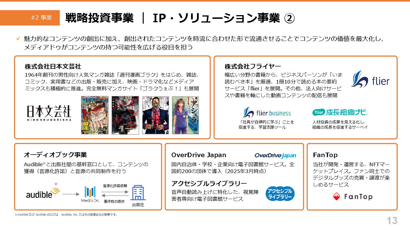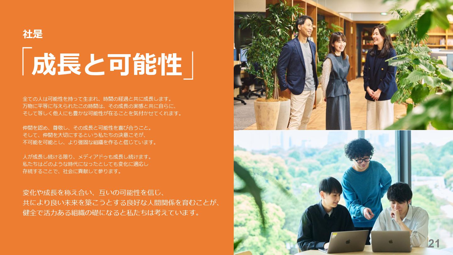 電子書籍流通を支える、株式会社メディアドゥの採用ピッチ資料です。 私たちは「MORE CONTENT FOR MORE PEOPLE!」(ひとつでも多くのコンテンツを、ひとりでも多くの人へ届けること)を事業ミッションに掲げ、日々、様々な挑戦をしています。 共に成長し、お互いへのリスペクトを大切にできる方を歓迎します。