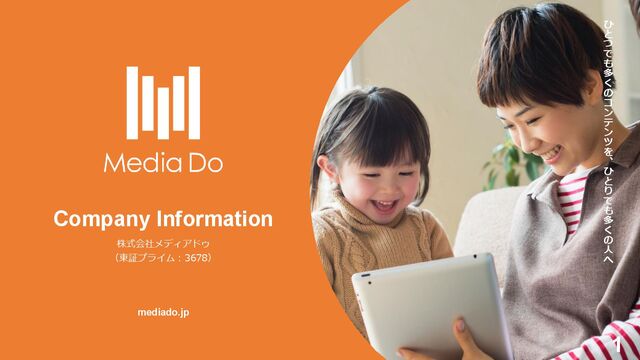 電子書籍流通を支える、株式会社メディアドゥの採用ピッチ資料です。 私たちは「MORE CONTENT FOR MORE PEOPLE!」(ひとつでも多くのコンテンツを、ひとりでも多くの人へ届けること)を事業ミッションに掲げ、日々、様々な挑戦をしています。 共に成長し、お互いへのリスペクトを大切にできる方を歓迎します。