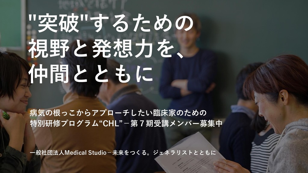 "突破"するための 視野と発想力を、 仲間とともに 病気の根っこからアプローチしたい臨床家のための 特別研修プログラム“CHL”-第7期受講メンバー募集中 一般社団法人Medical Studio-未来をつくる。ジェネラリストとともに 1