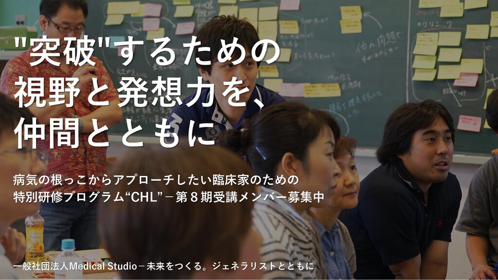 "突破"するための 視野と発想力を、 仲間とともに 病気の根っこからアプローチしたい臨床家のための 特別研修プログラム“CHL”-第8期受講メンバー募集中 一般社団法人Medical Studio-未来をつくる。ジェネラリストとともに 1