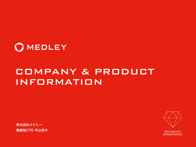 RubyKaigi 2017のRuby Sponsorを務めさせていただきました。 3日目(9/20)に、取締役CTO平山がメドレーと提供するプロダクトについて紹介させていただいた際の資料です。