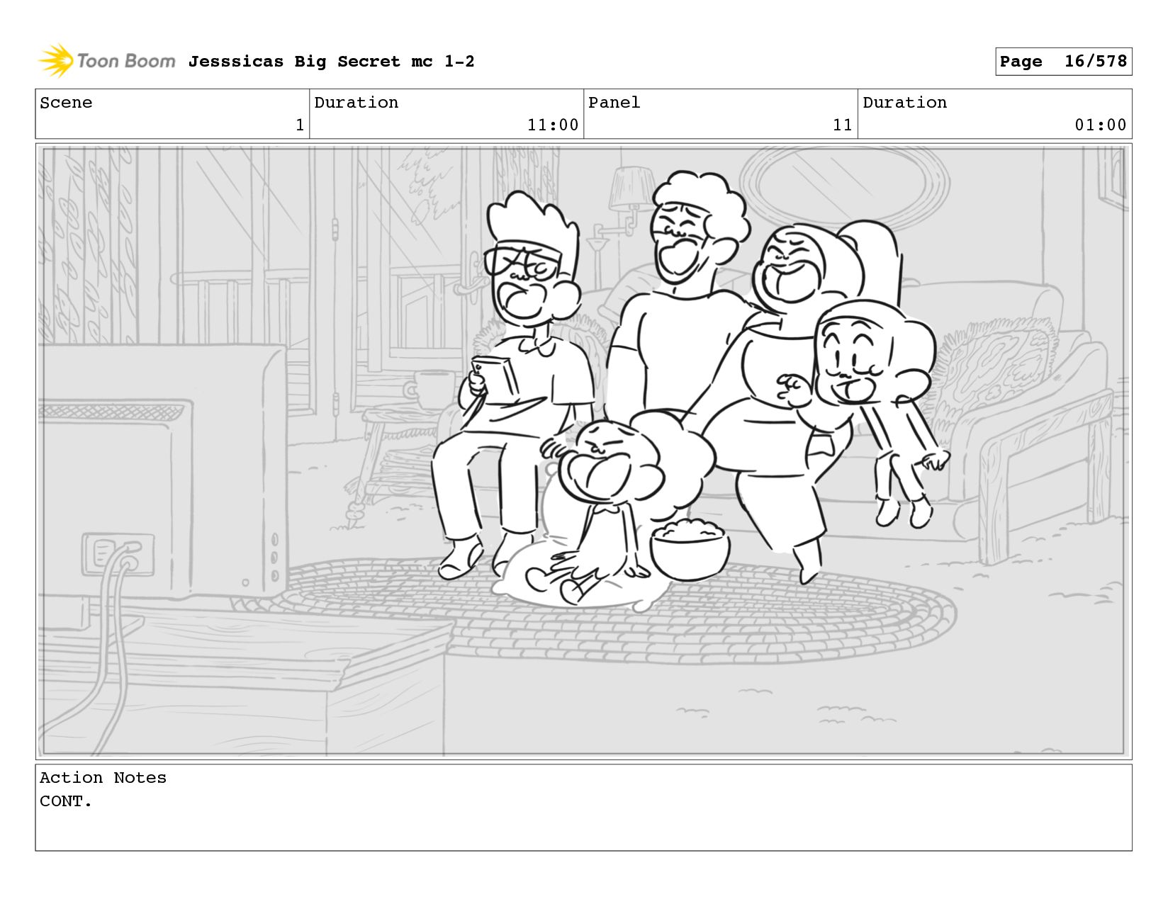 Scene 1 Duration 11:00 Panel 11 Duration 01:00 Action Notes