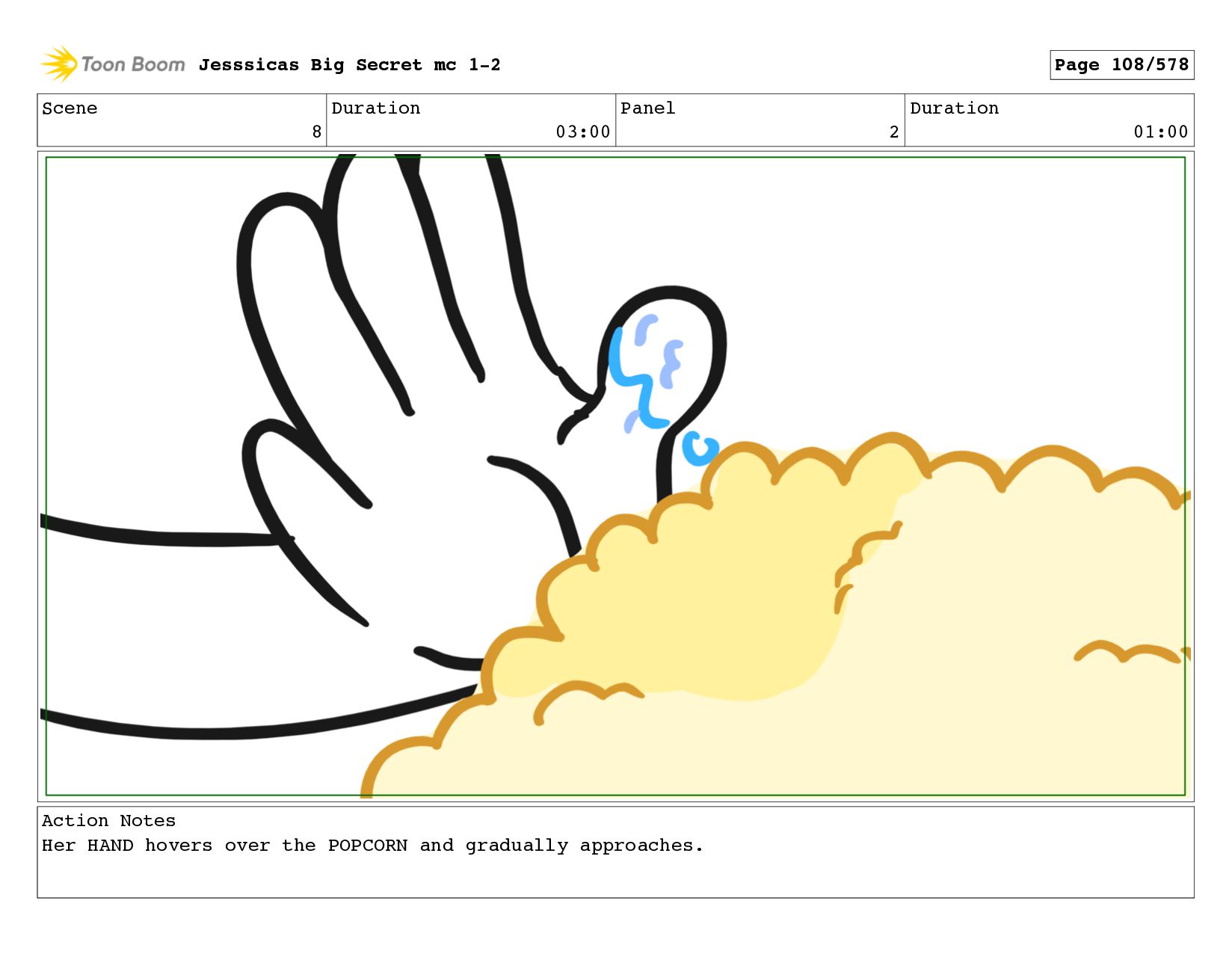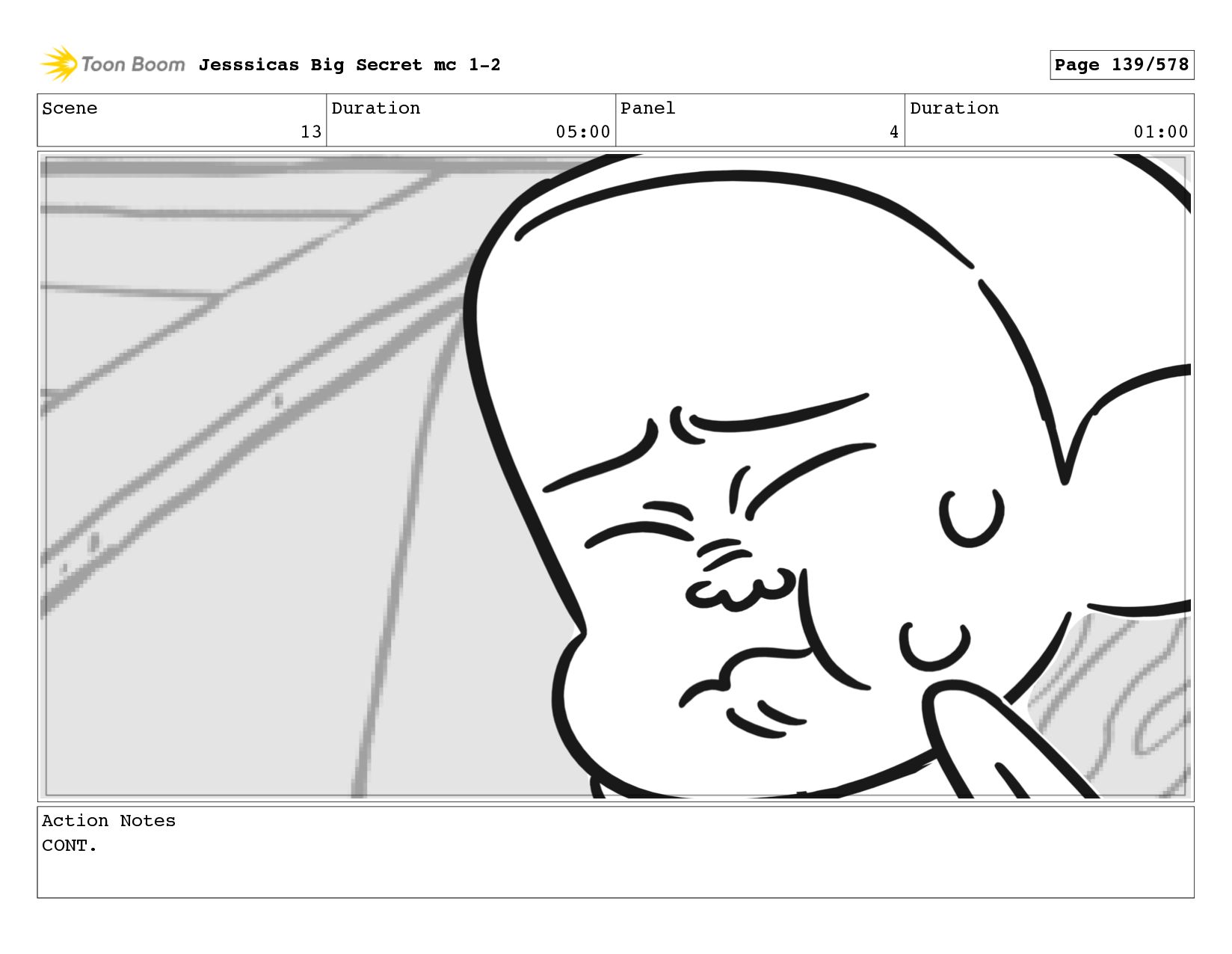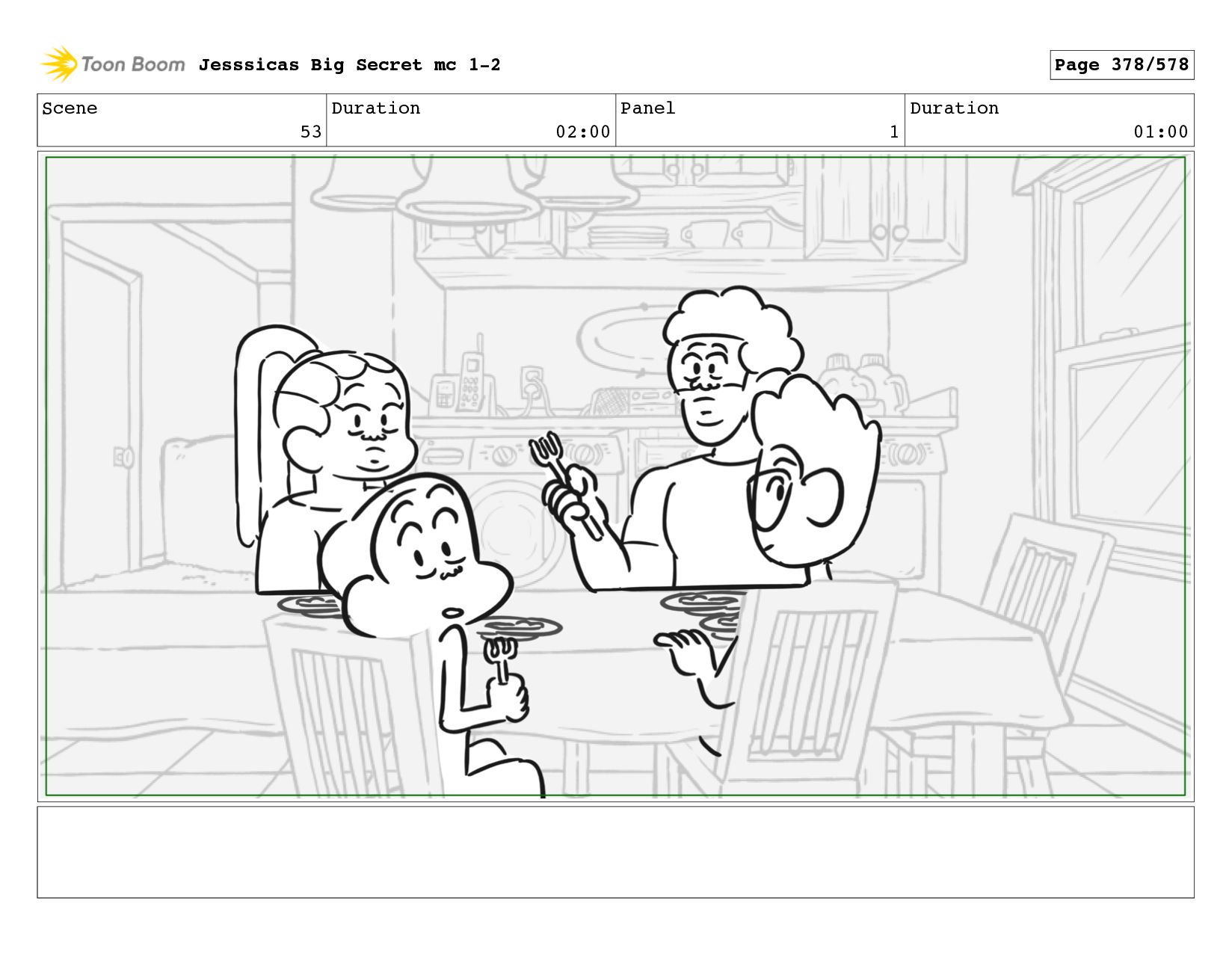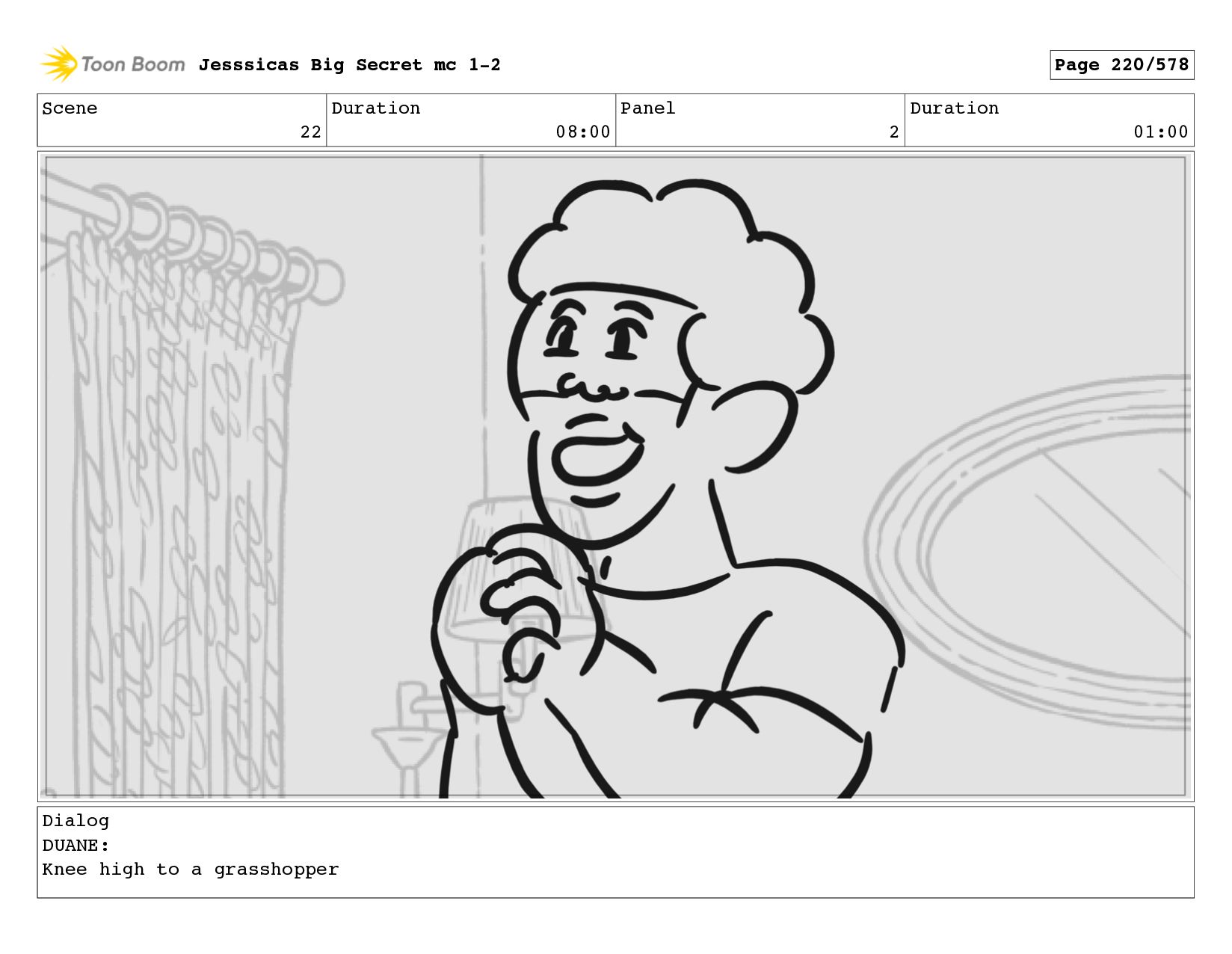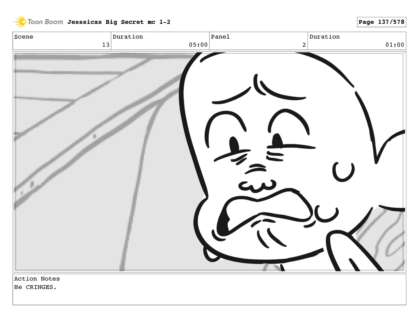 Scene 2 Duration 08:00 Panel 1 Duration 01:00 Action Notes