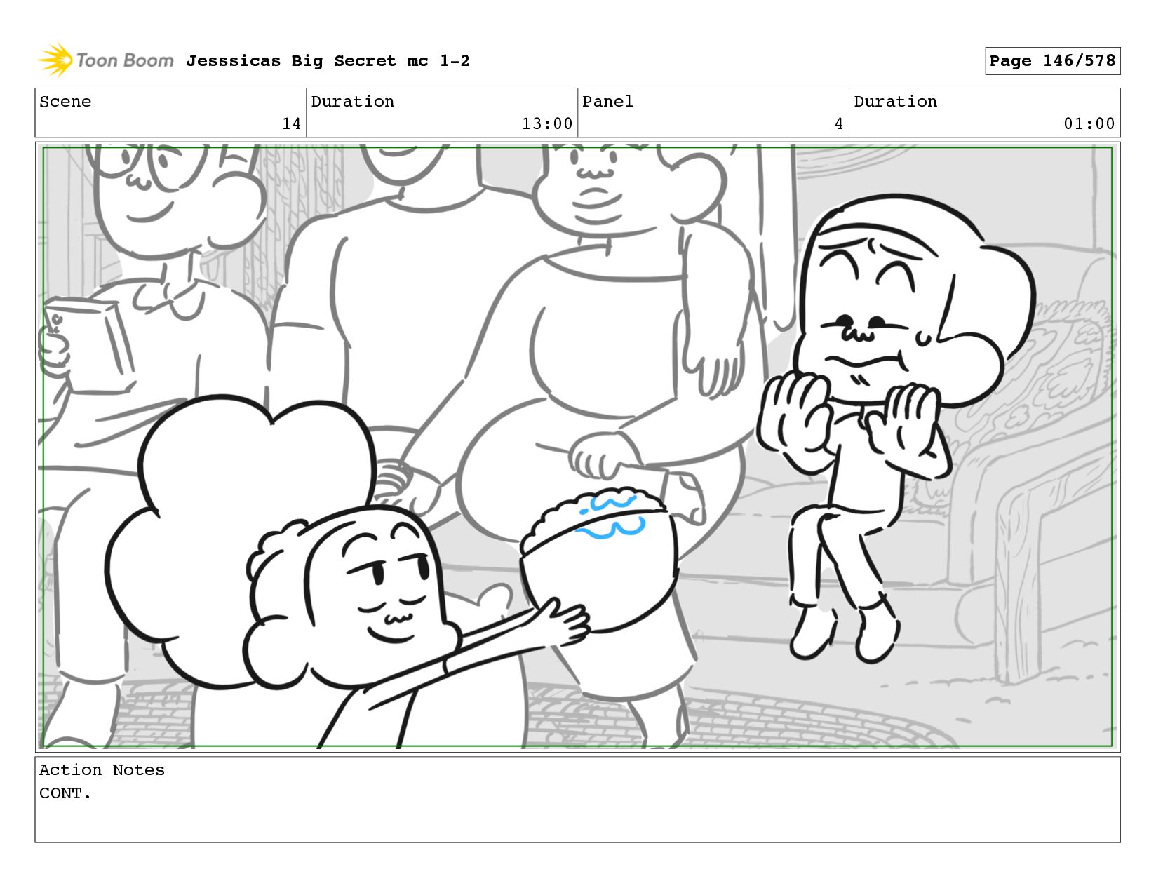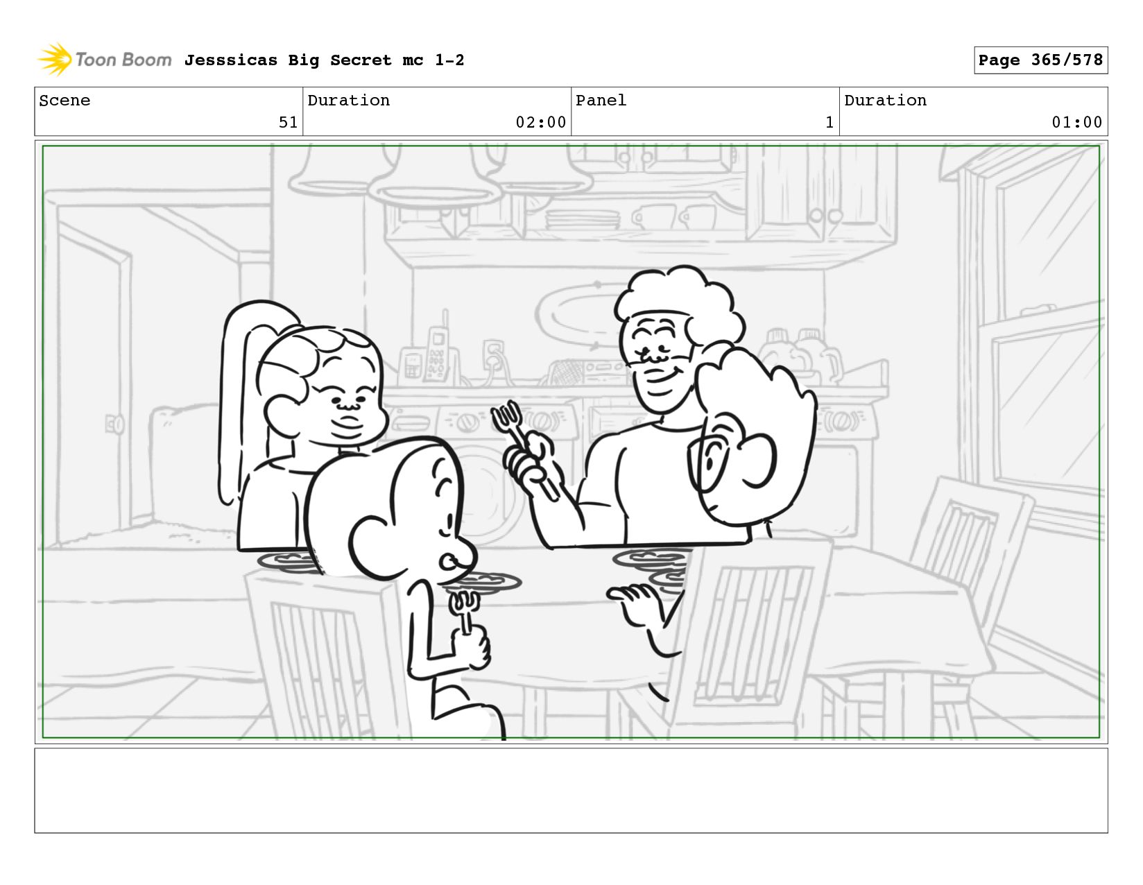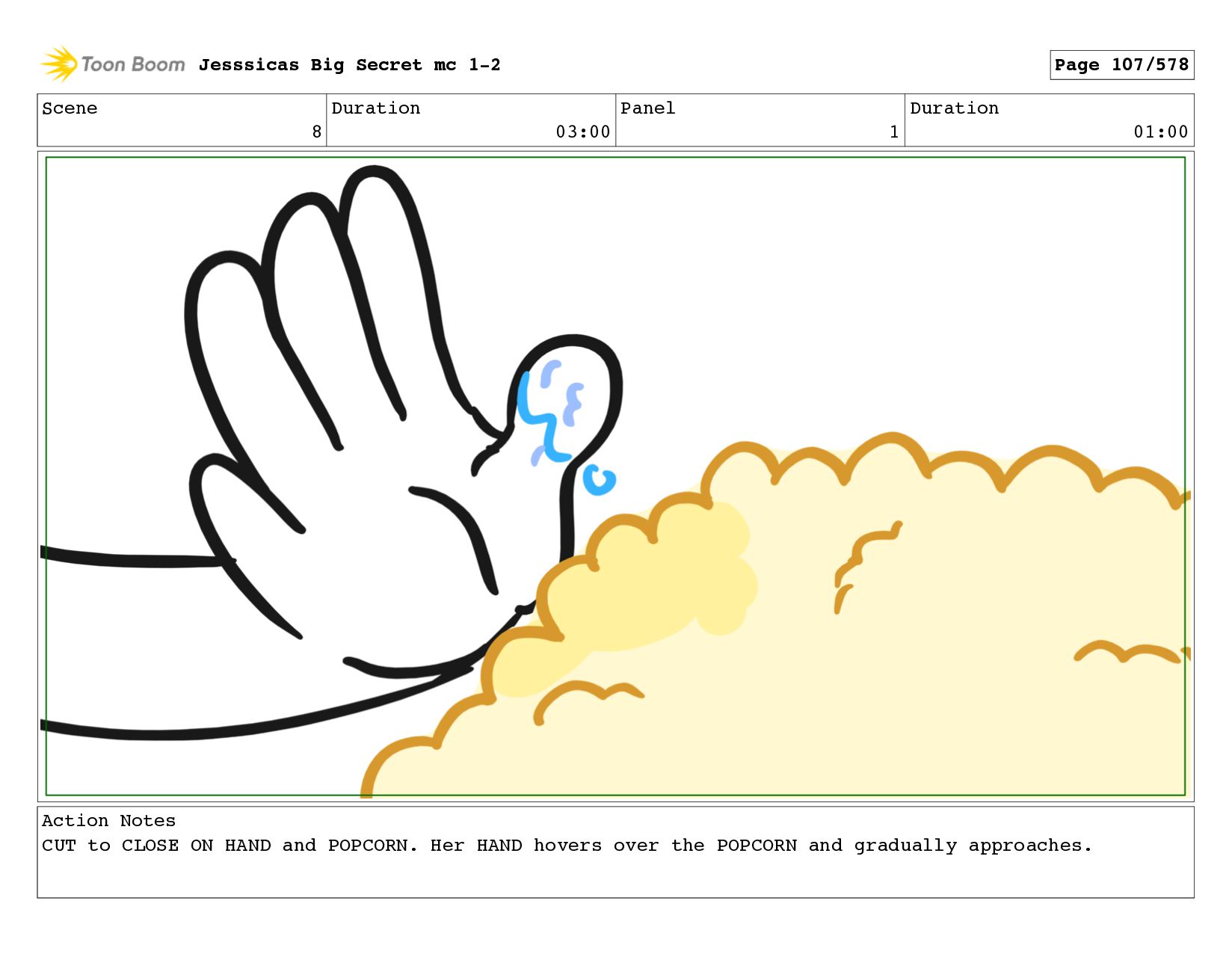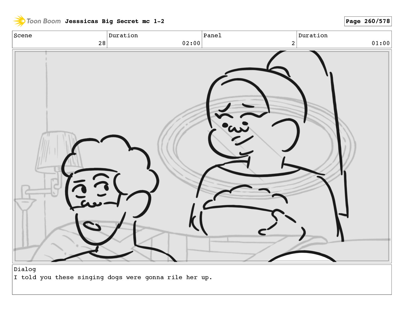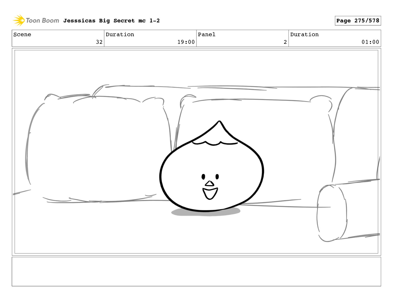Scene 2 Duration 08:00 Panel 1 Duration 01:00 Action Notes