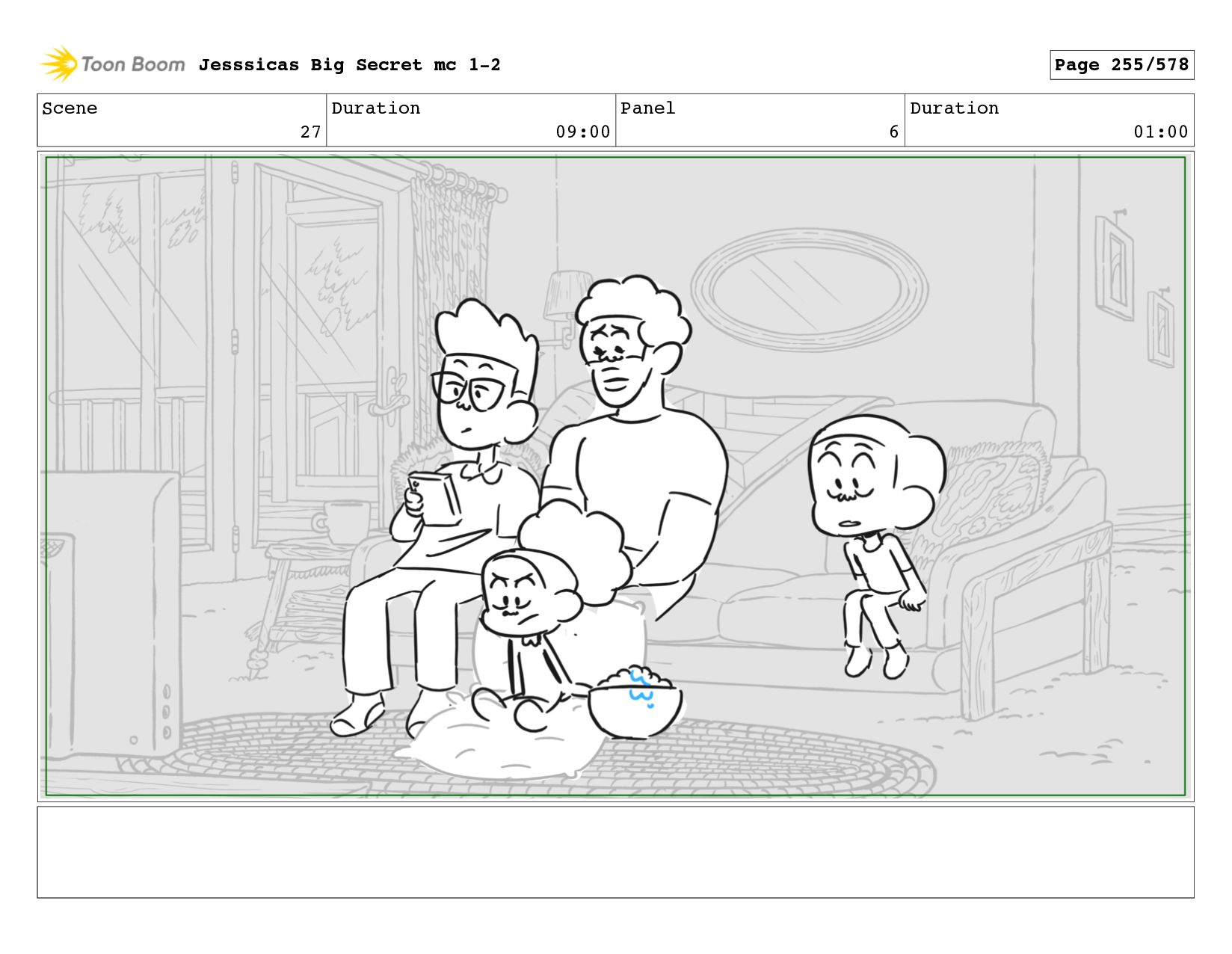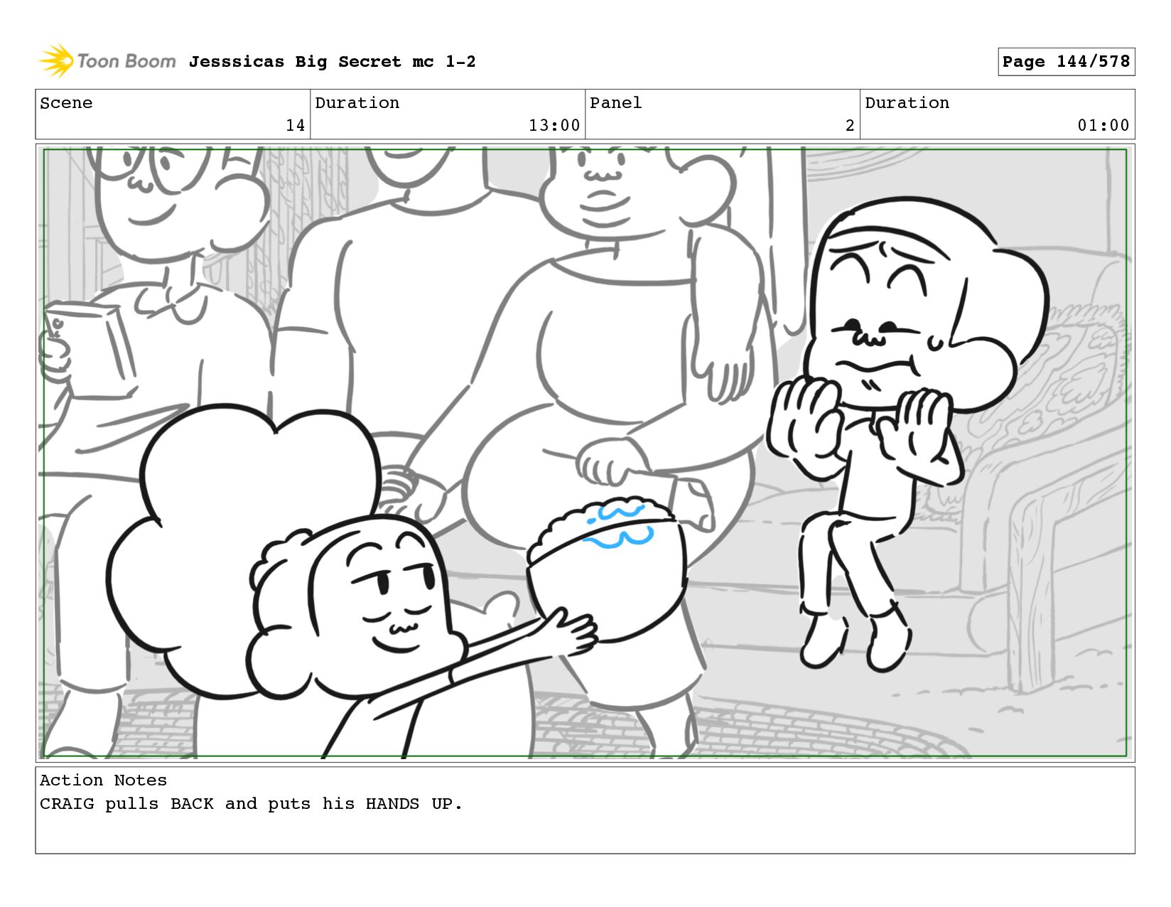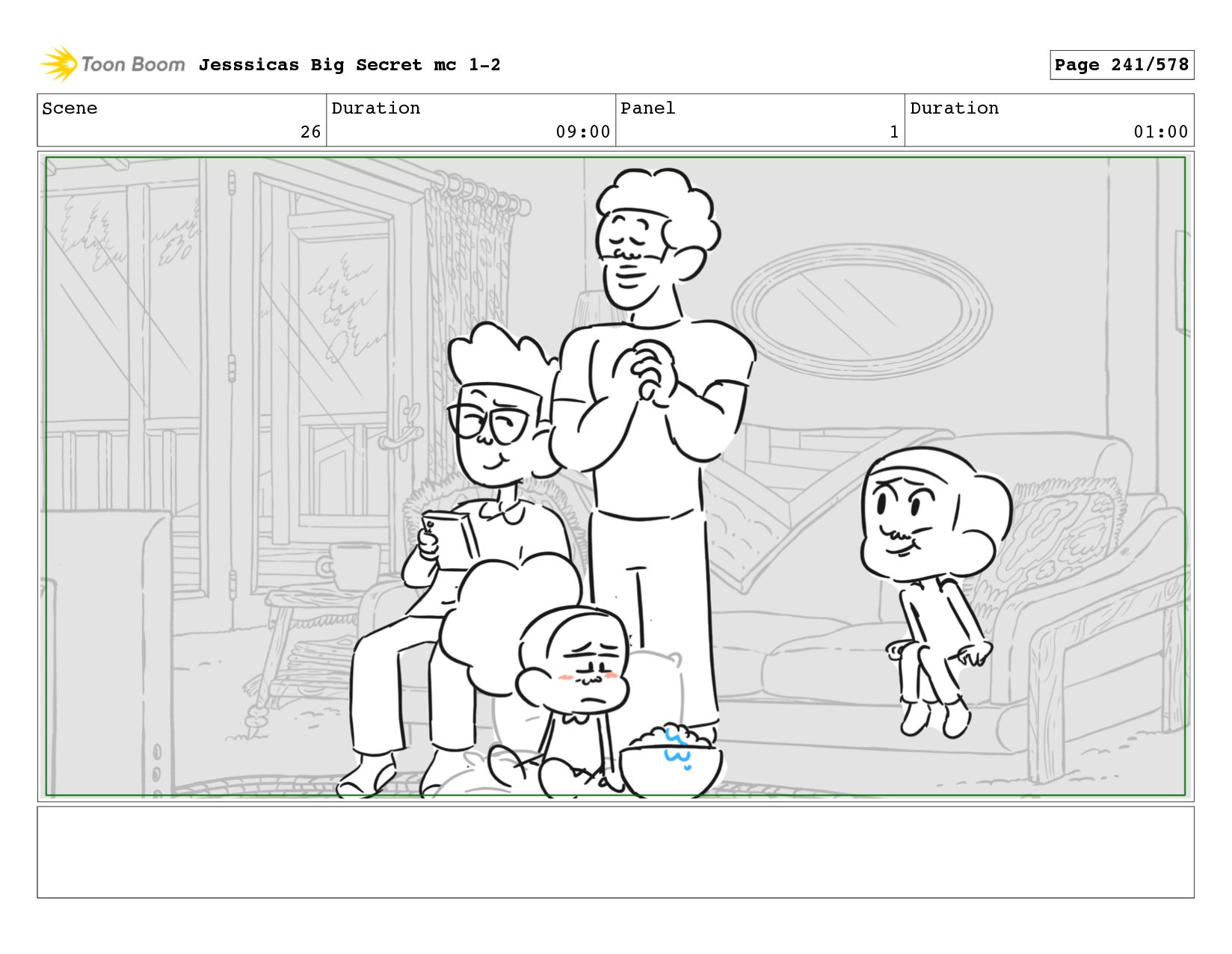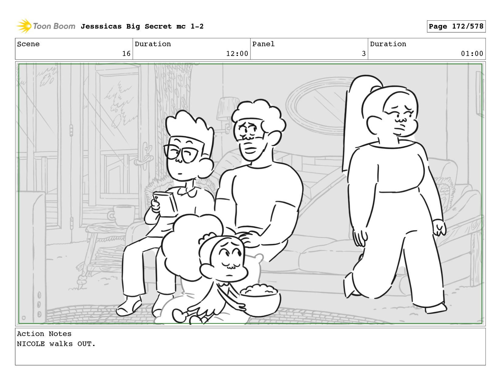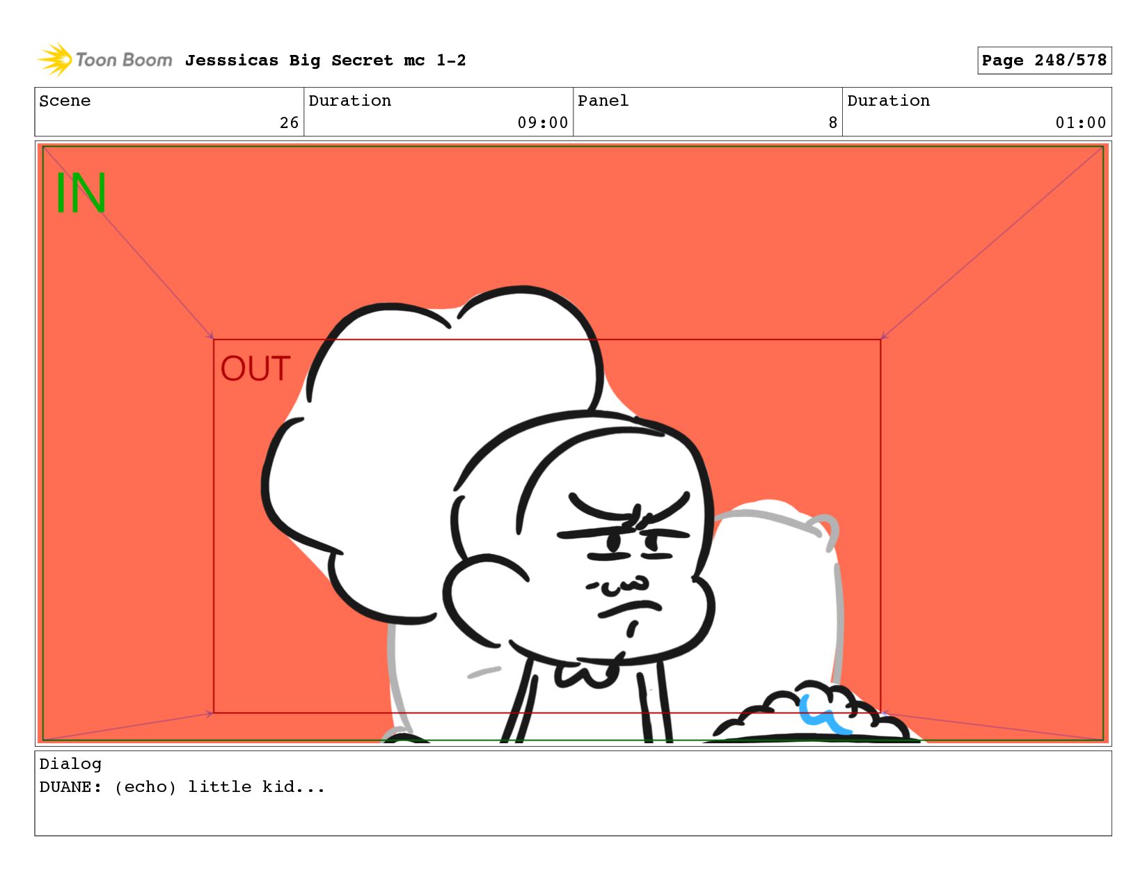 Scene 2 Duration 08:00 Panel 1 Duration 01:00 Action Notes