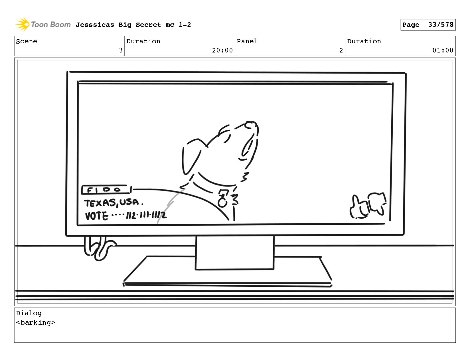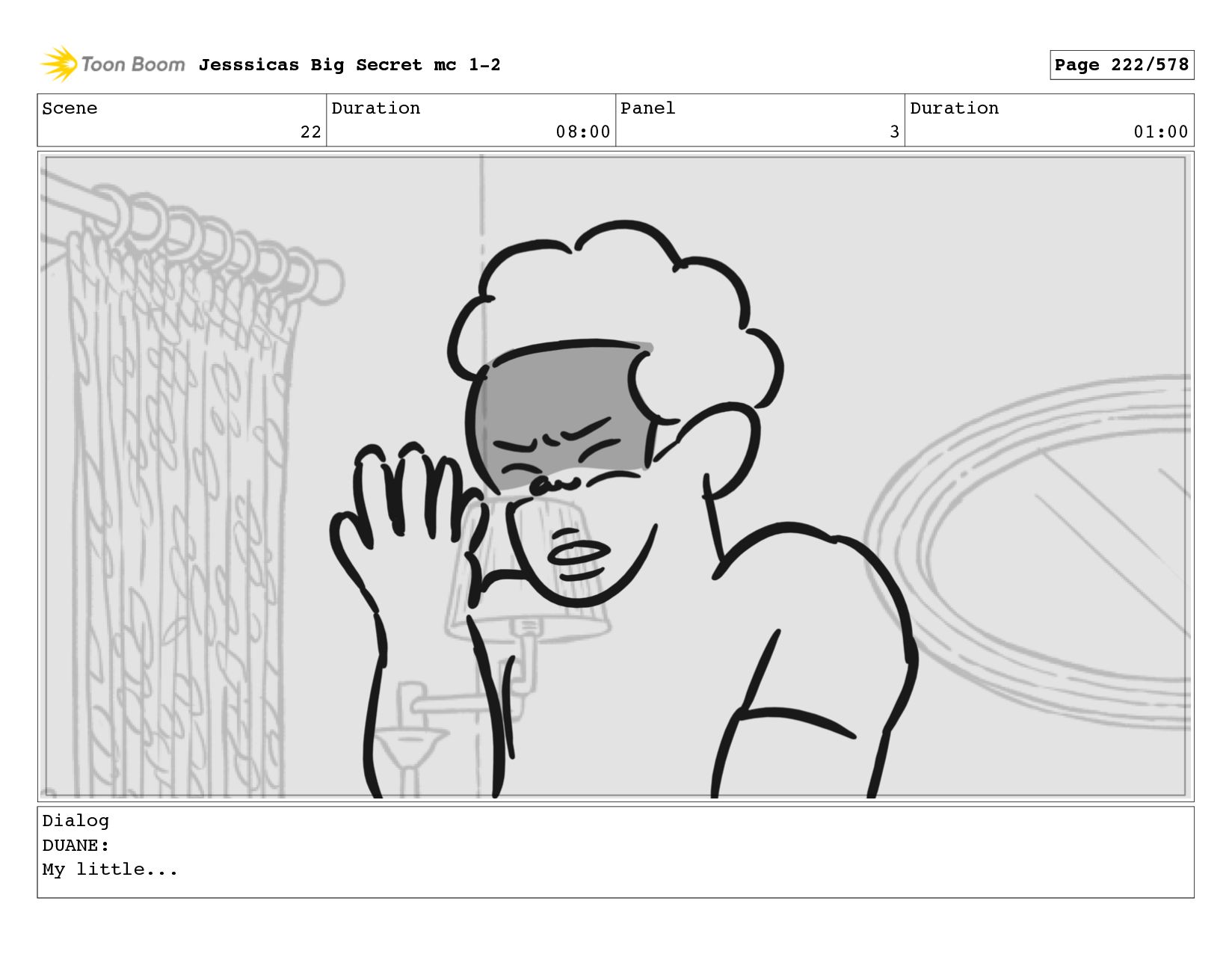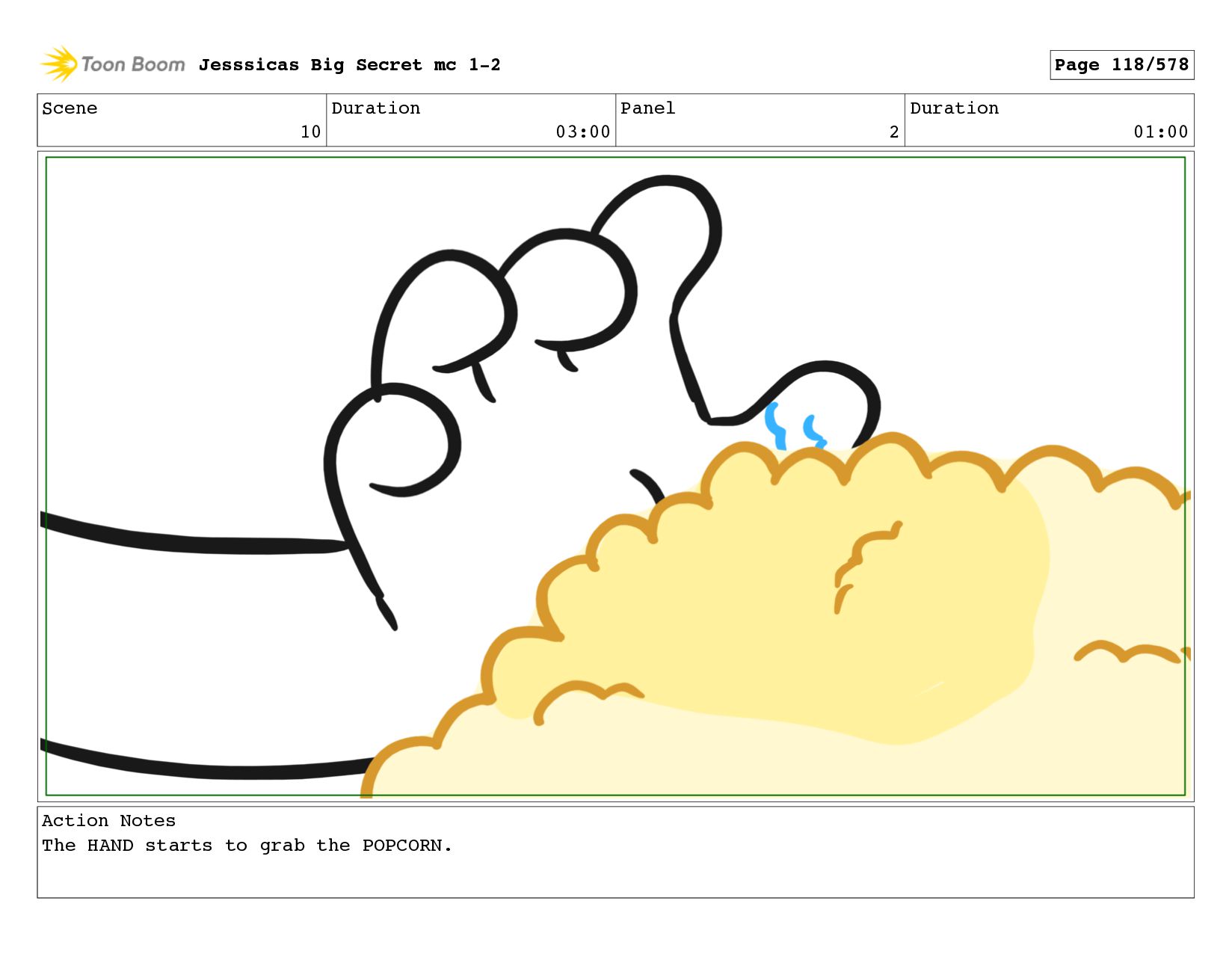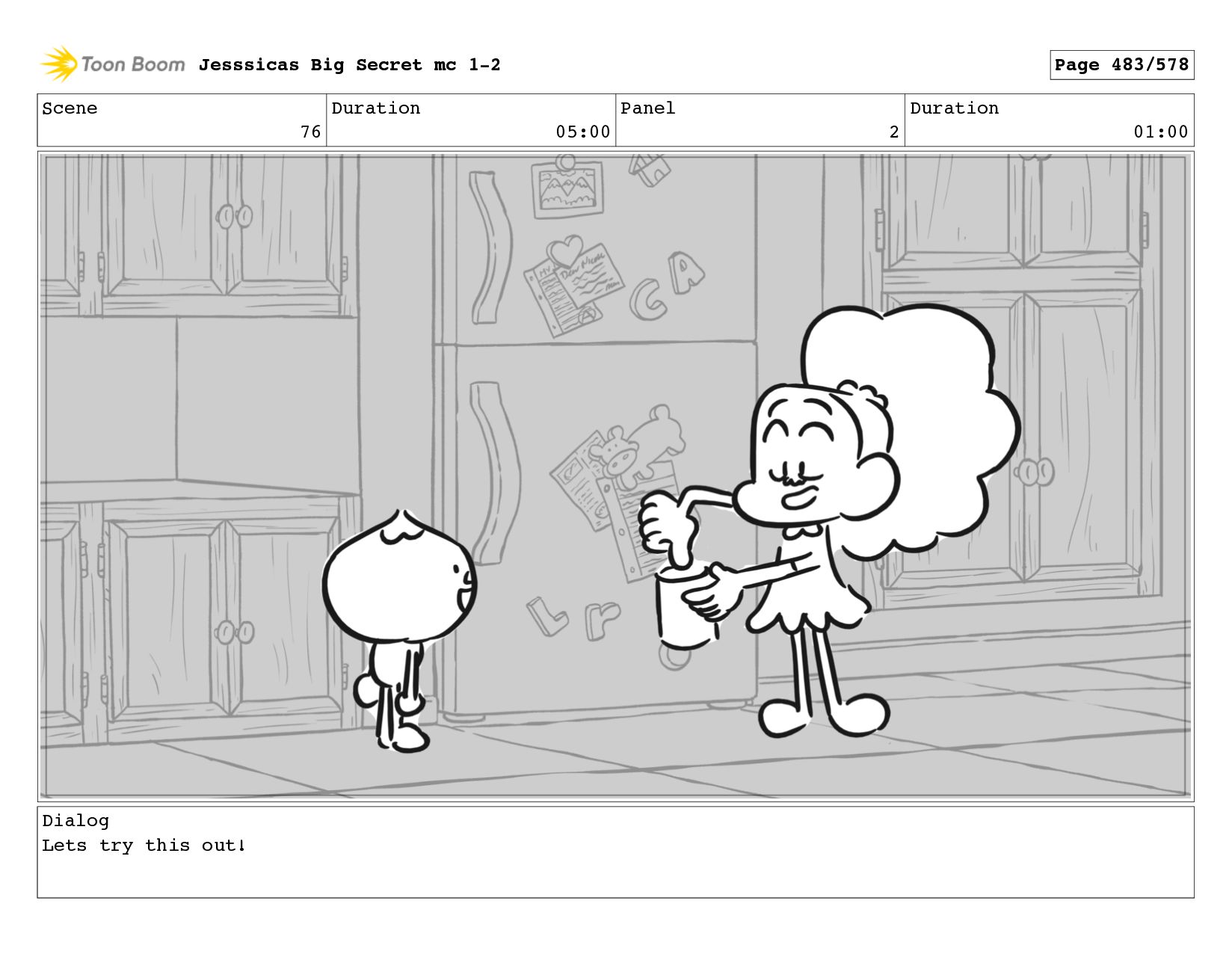 Scene 2 Duration 08:00 Panel 1 Duration 01:00 Action Notes
