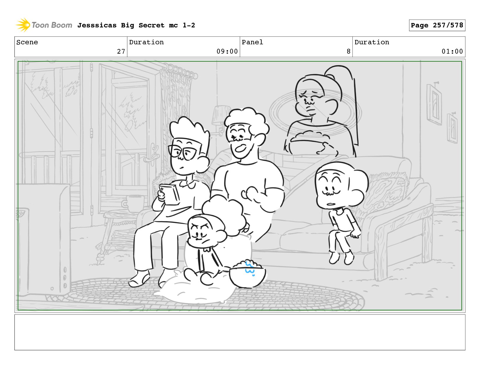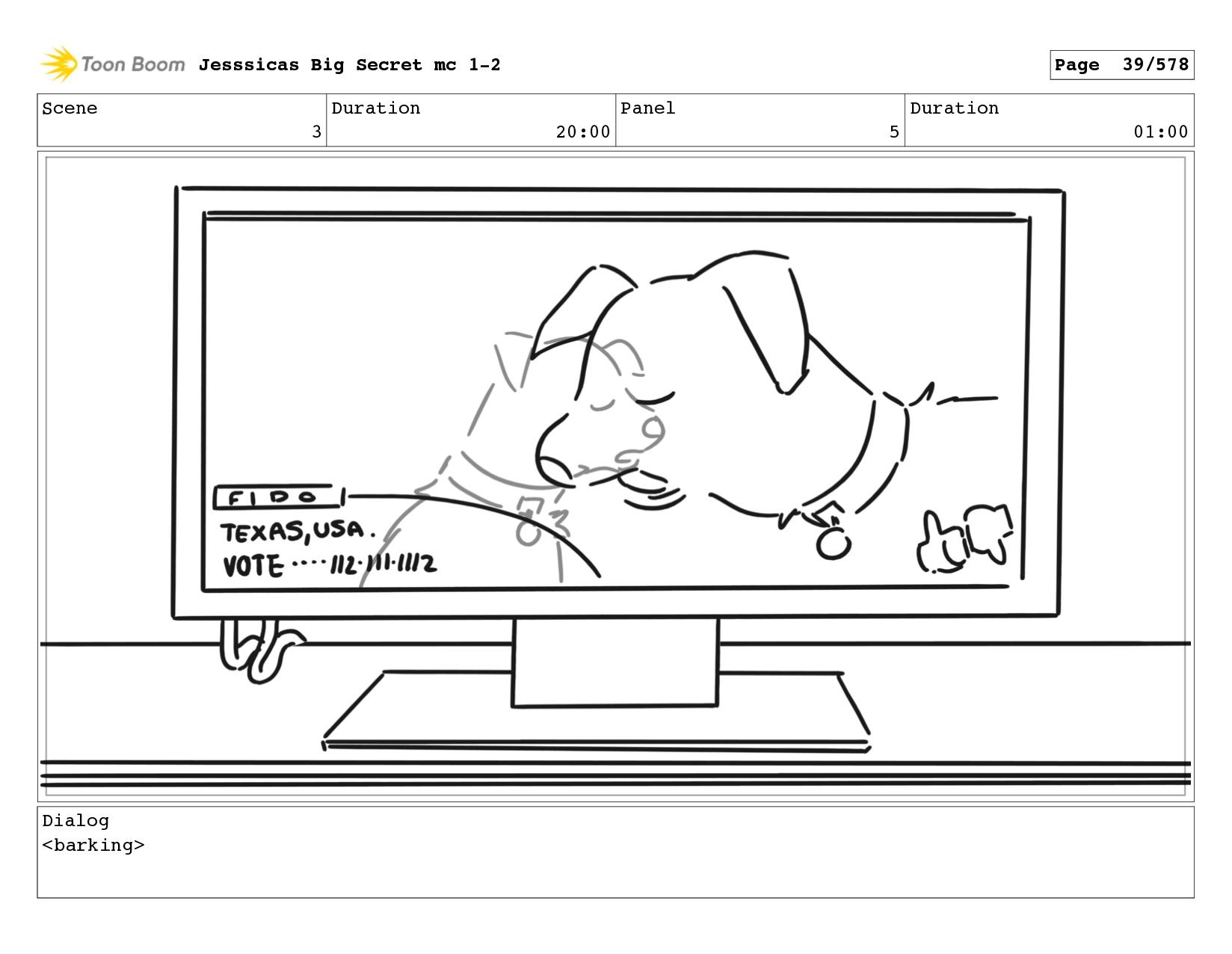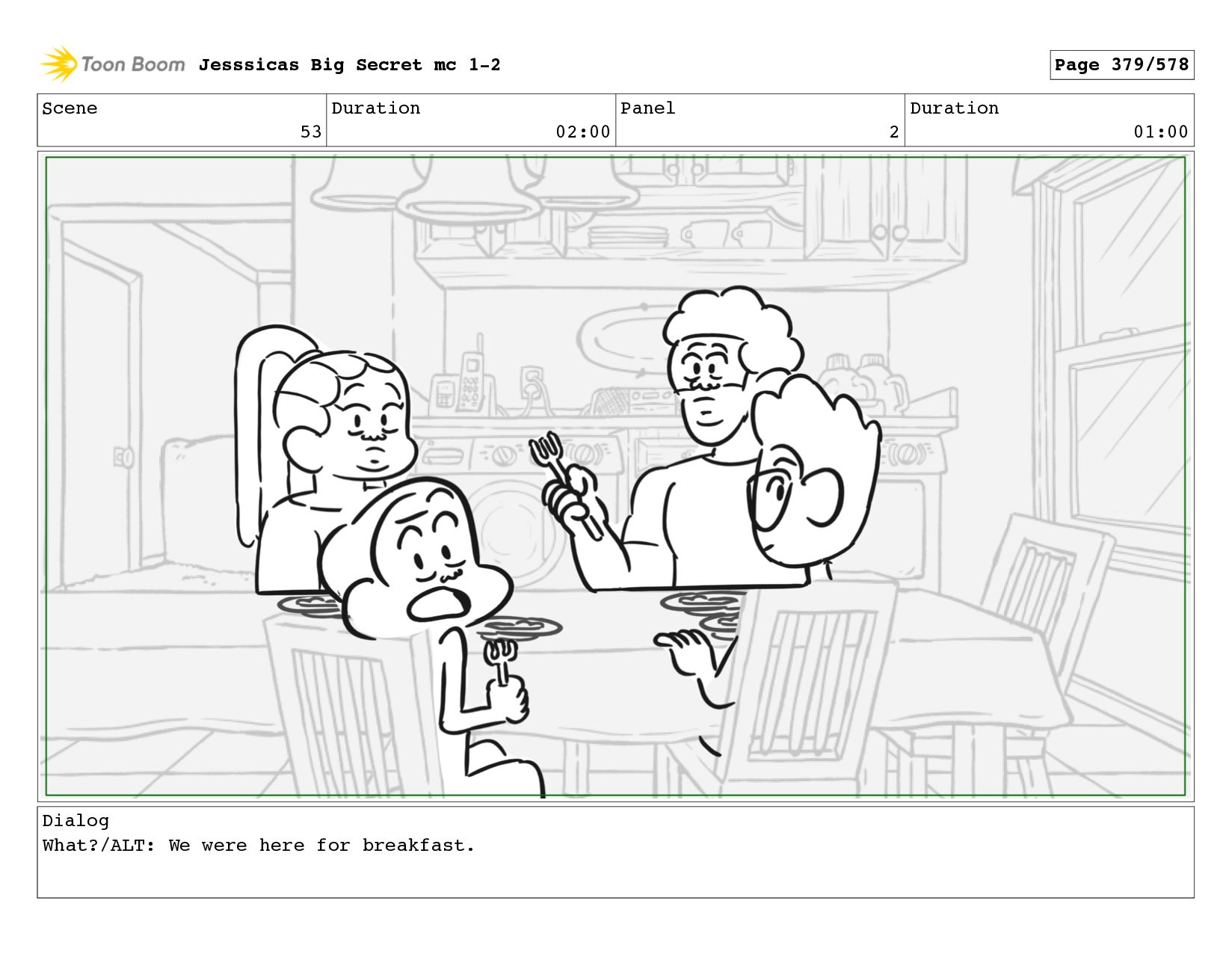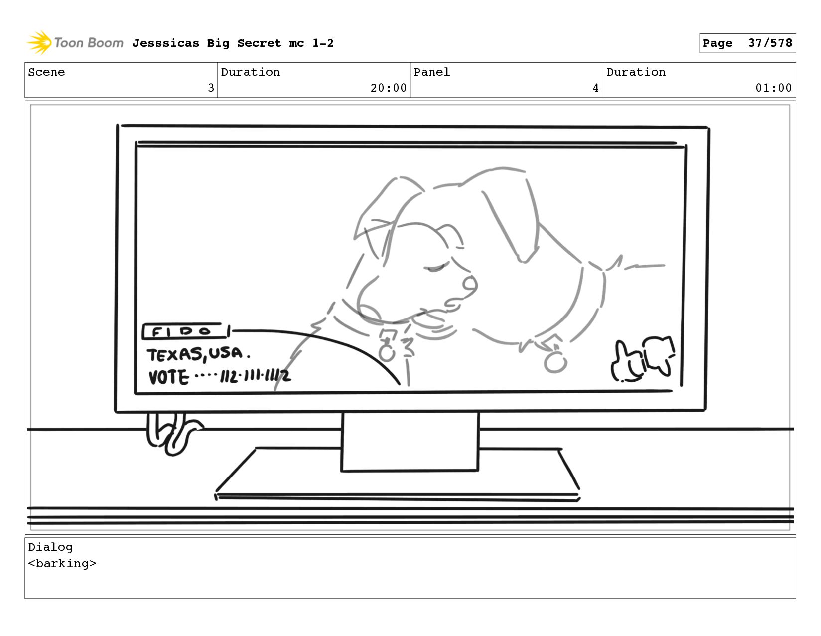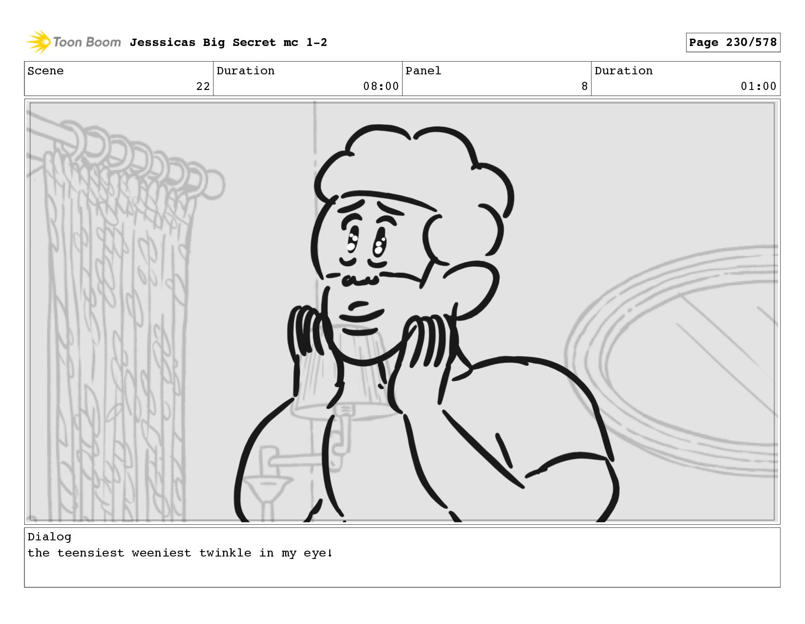 Scene 2 Duration 08:00 Panel 1 Duration 01:00 Action Notes