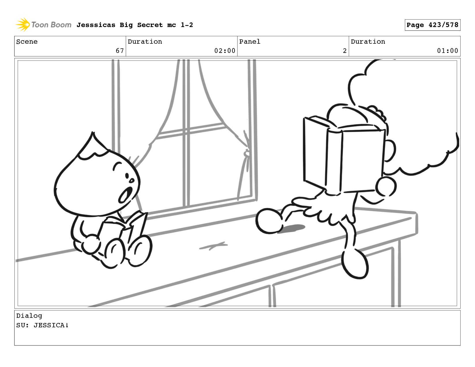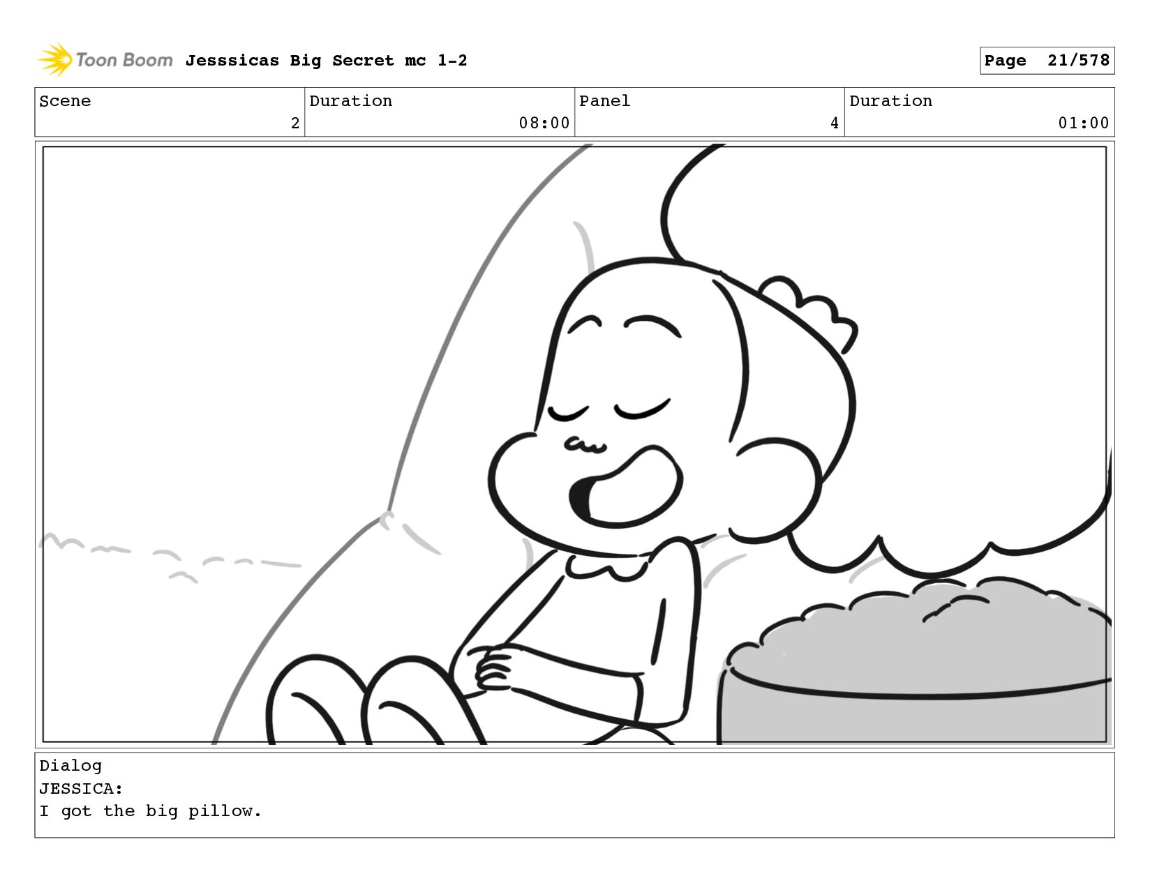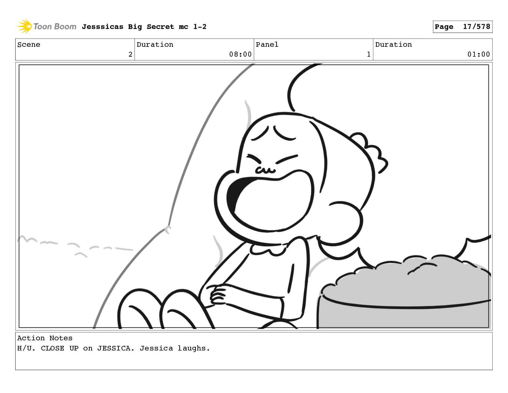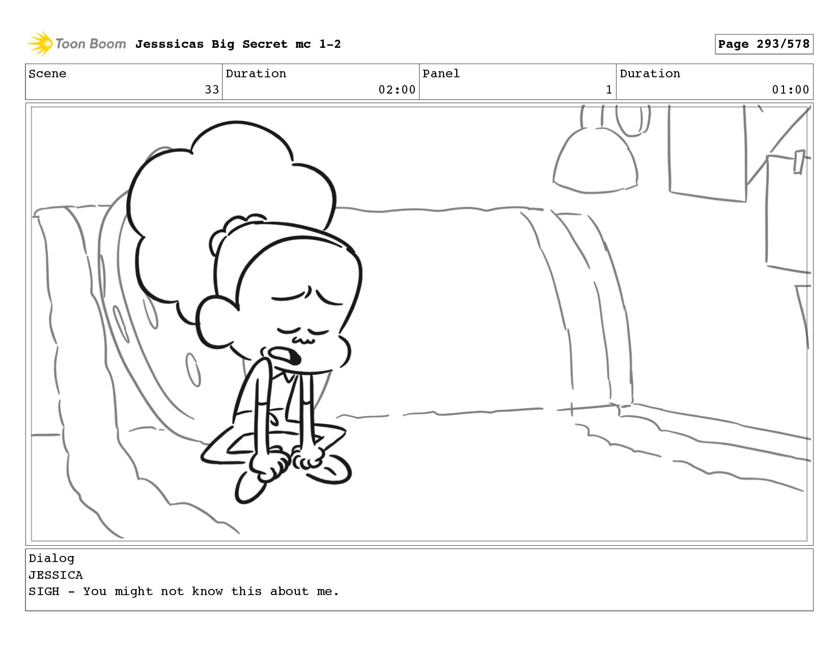 Scene 2 Duration 08:00 Panel 3 Duration 01:00 Dialog JESSICA: