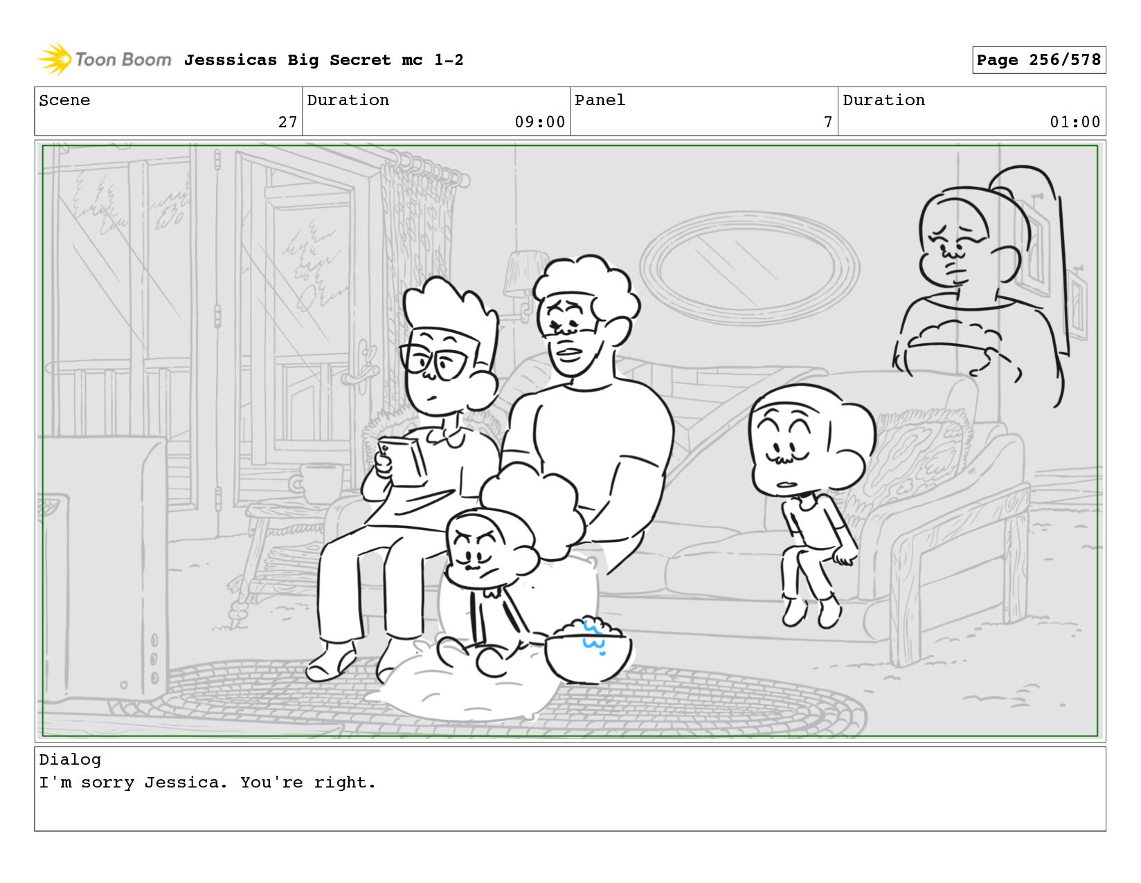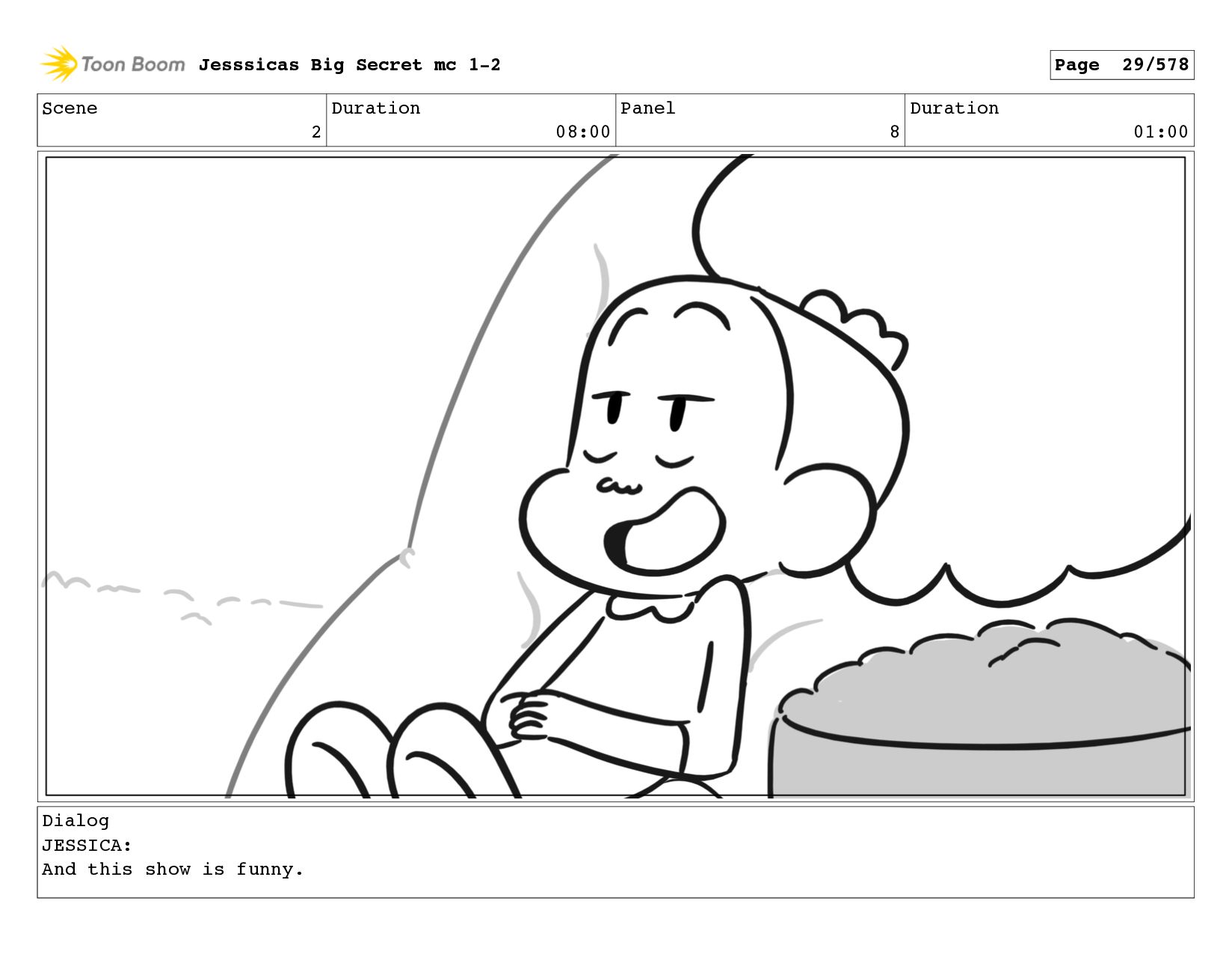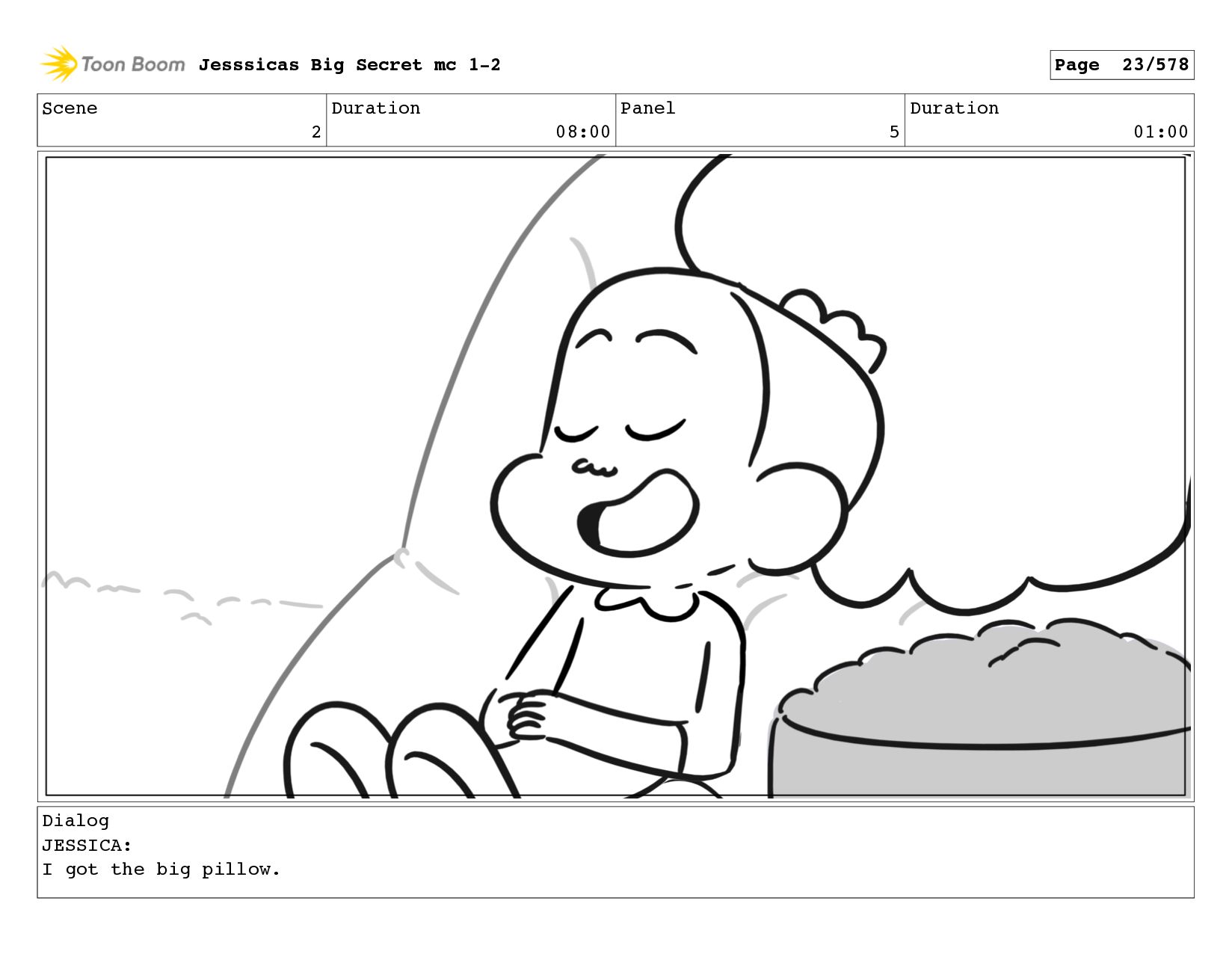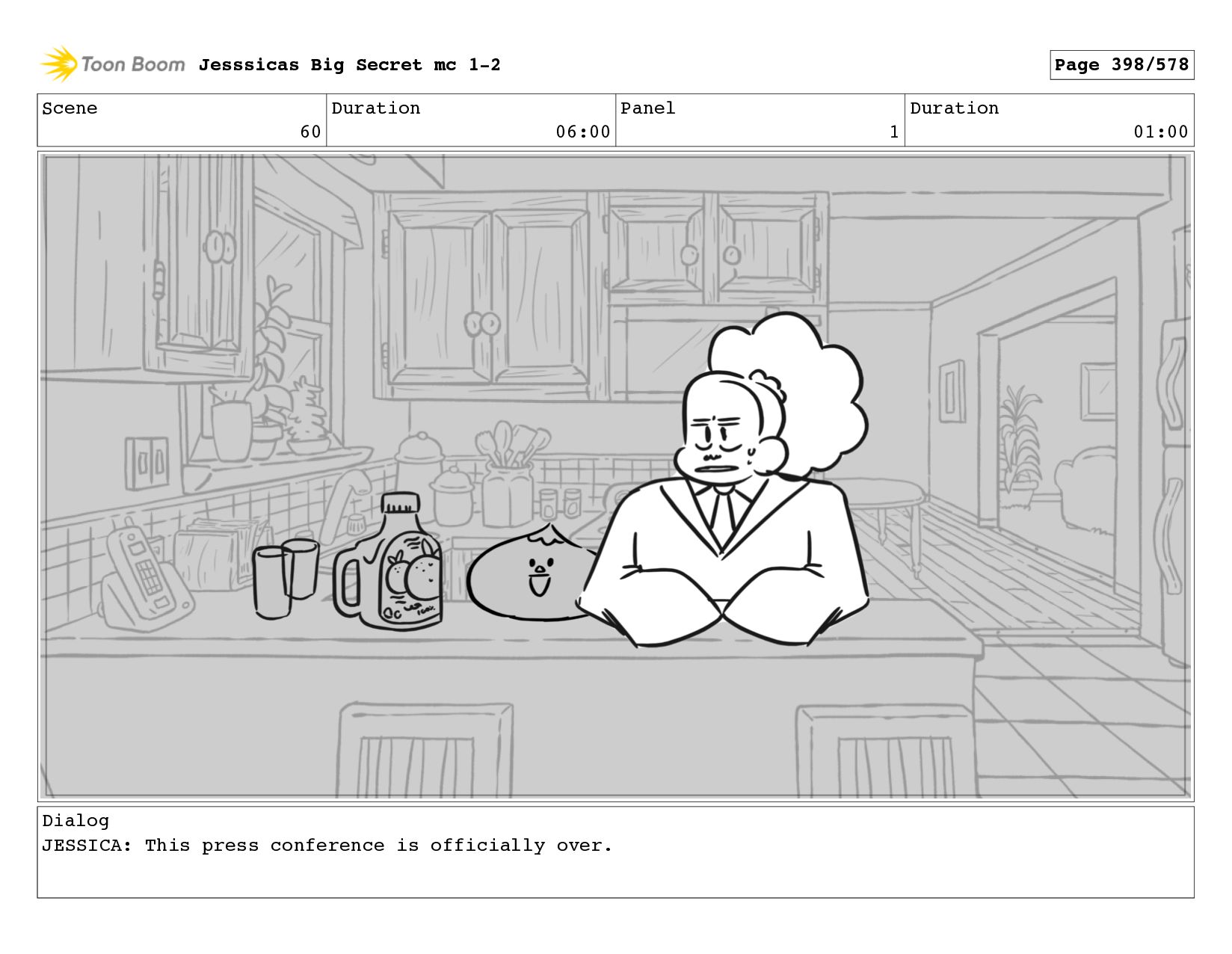 Scene 2 Duration 08:00 Panel 3 Duration 01:00 Dialog JESSICA: