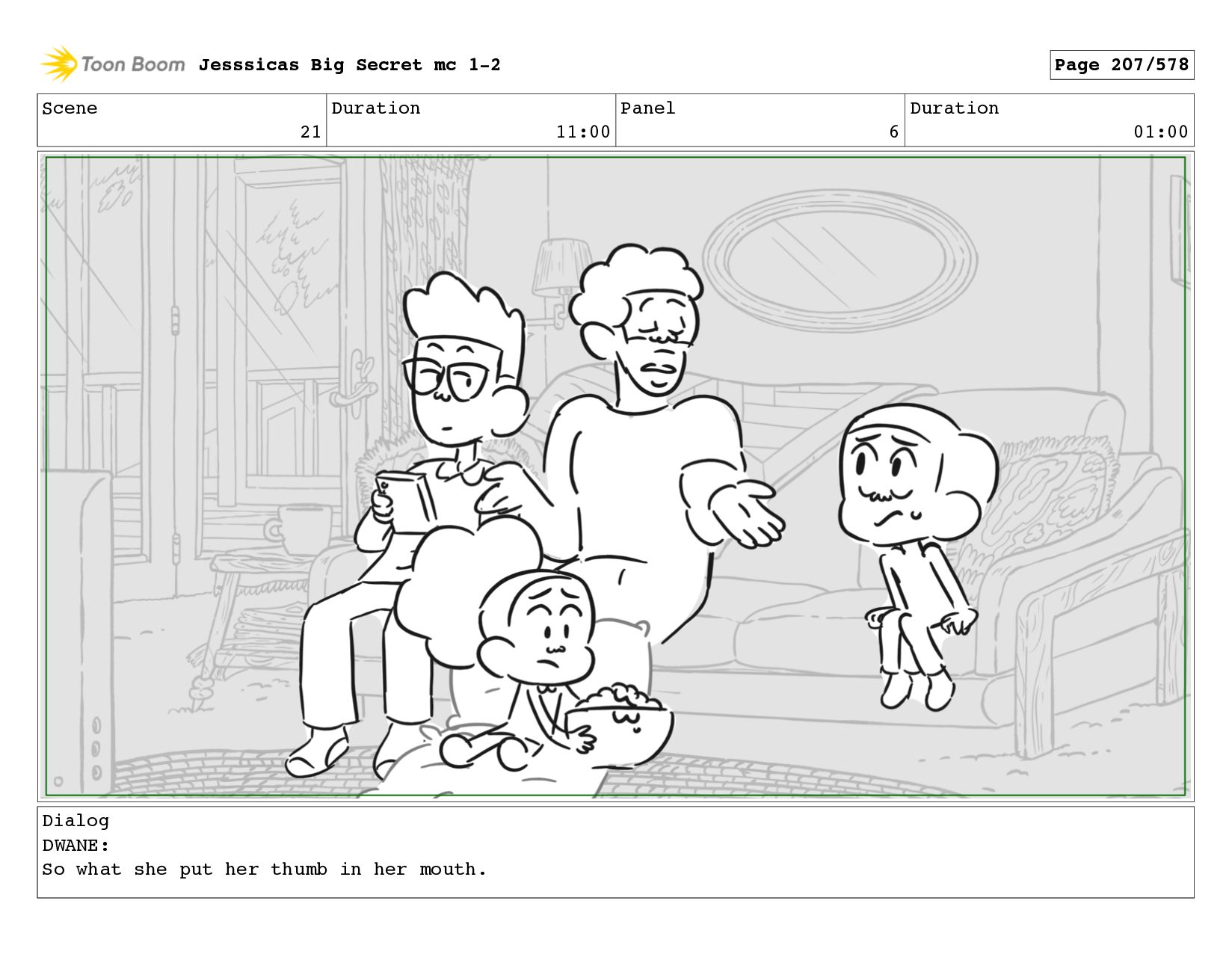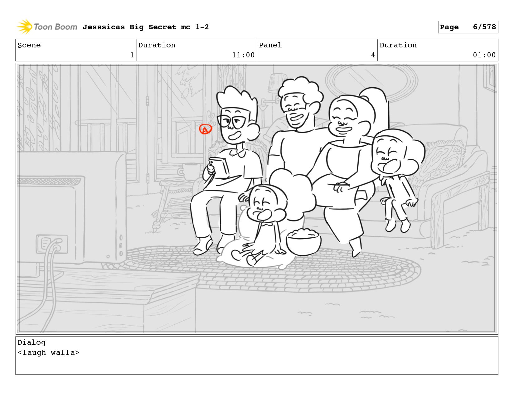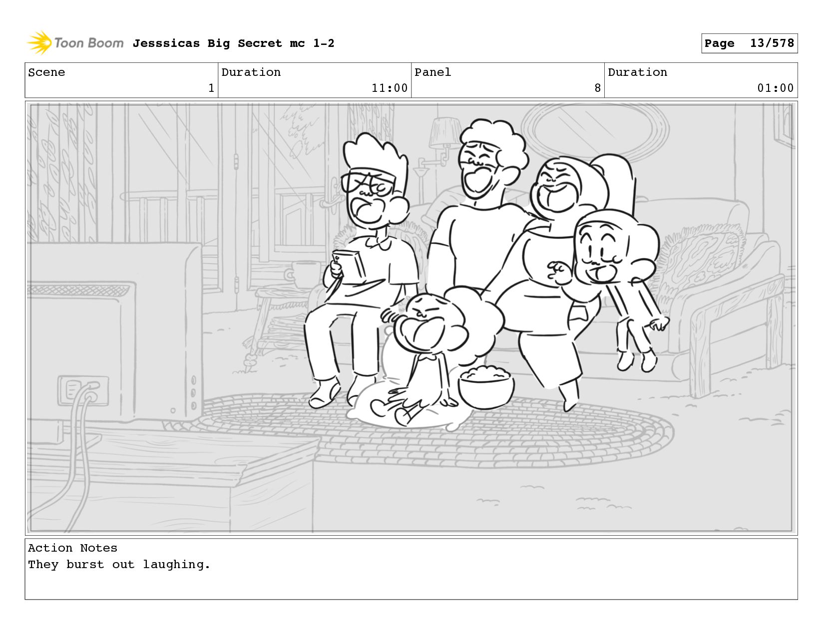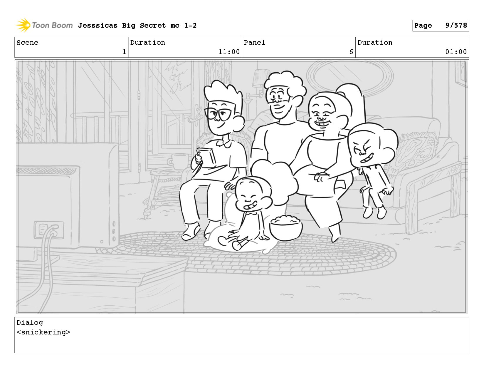 Scene 1 Duration 11:00 Panel 6 Duration 01:00 Dialog <snickering>