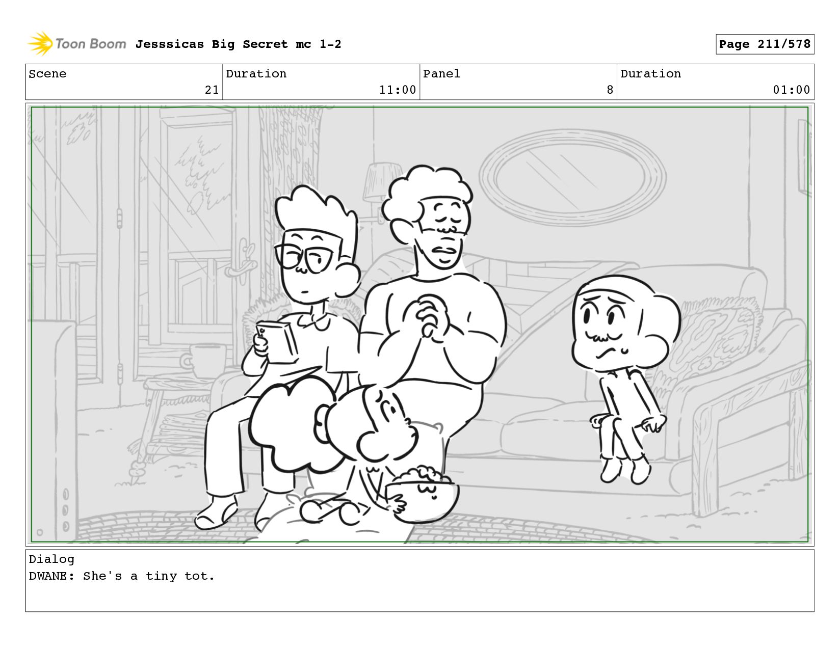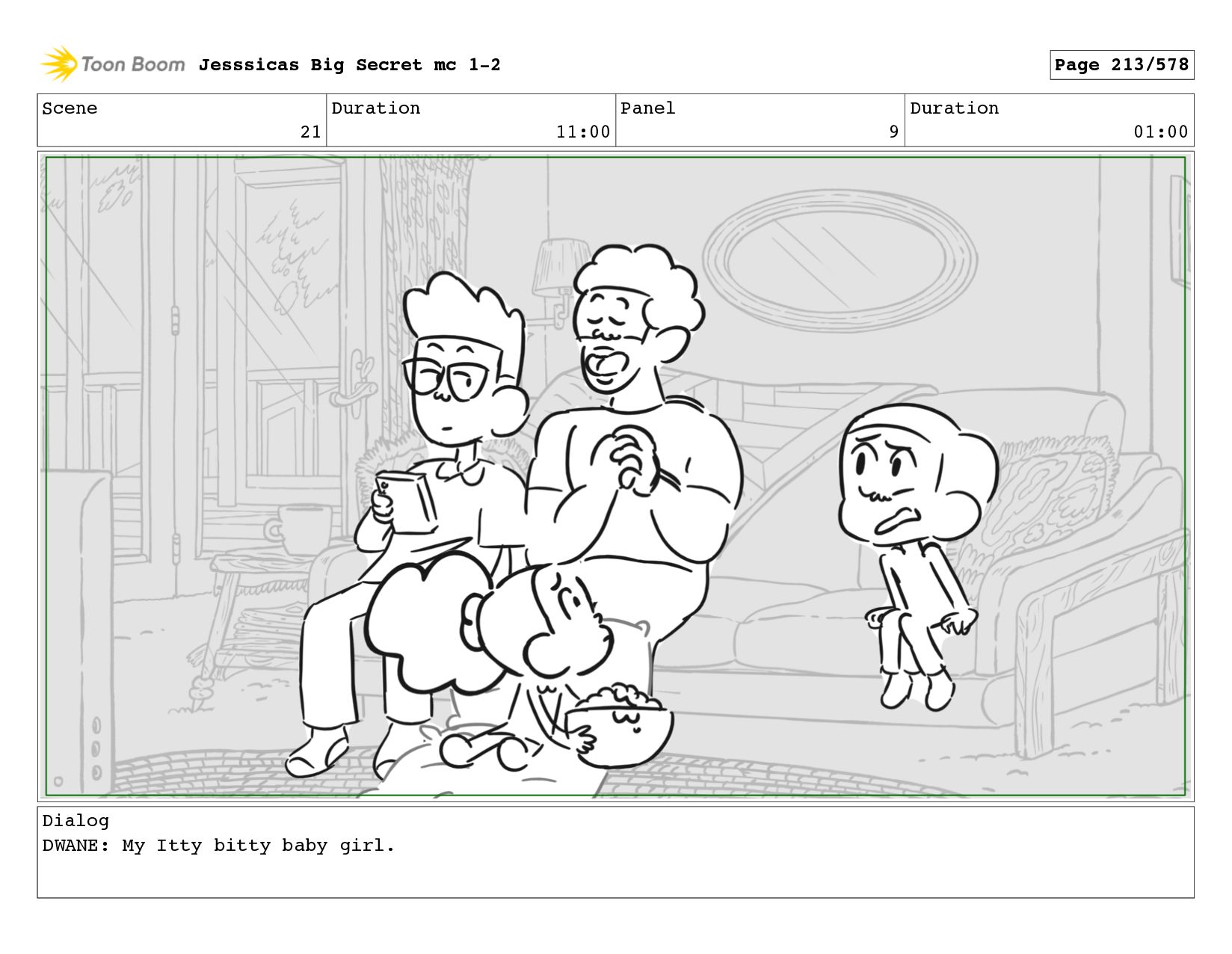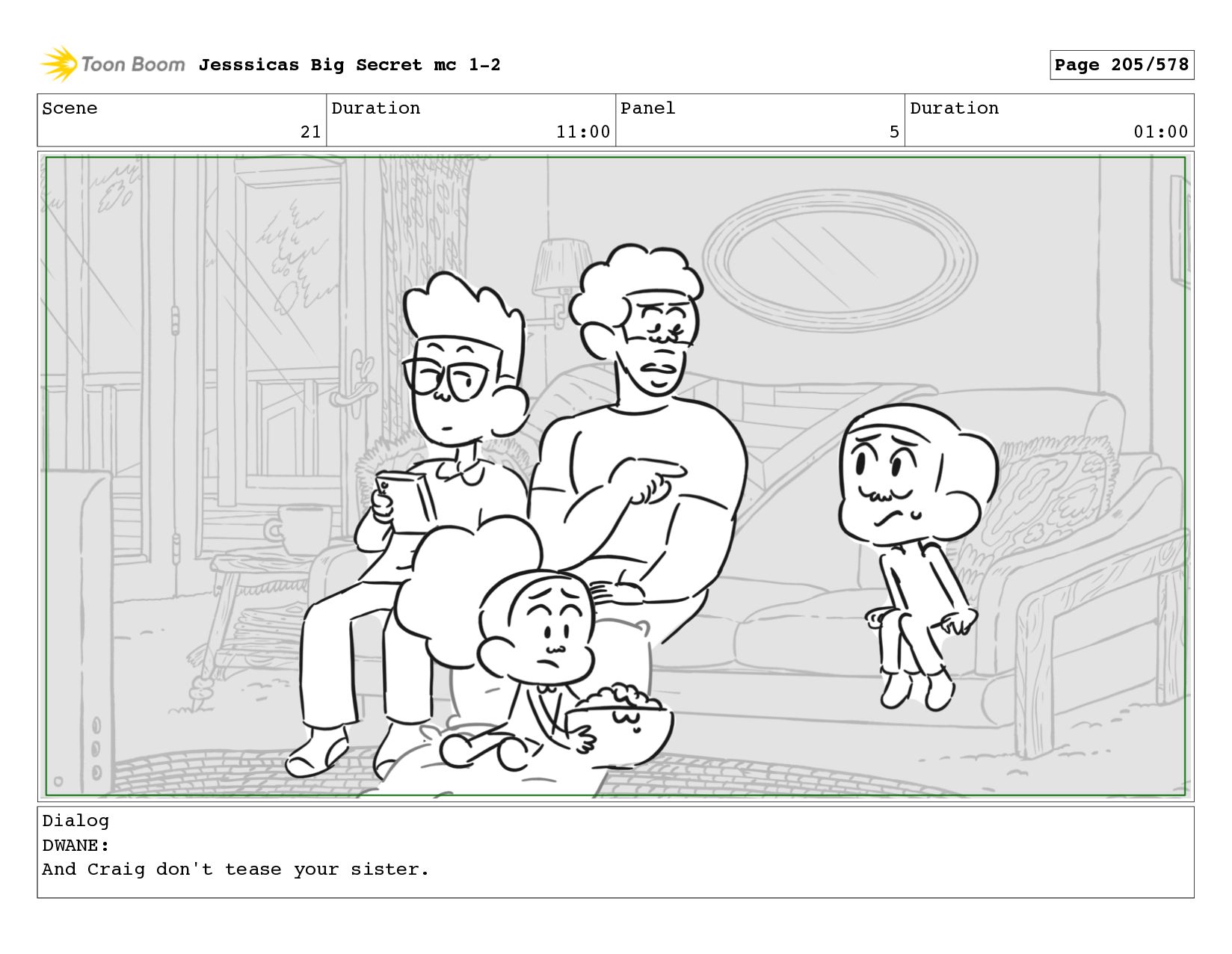 Scene 1 Duration 11:00 Panel 6 Duration 01:00 Dialog <snickering>