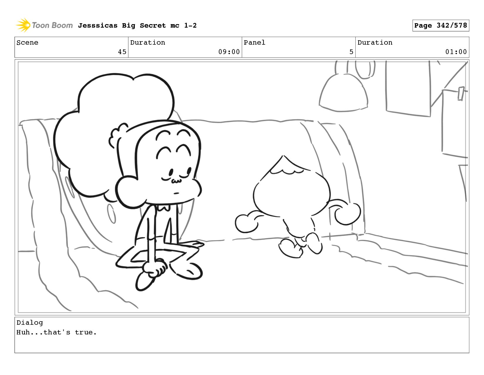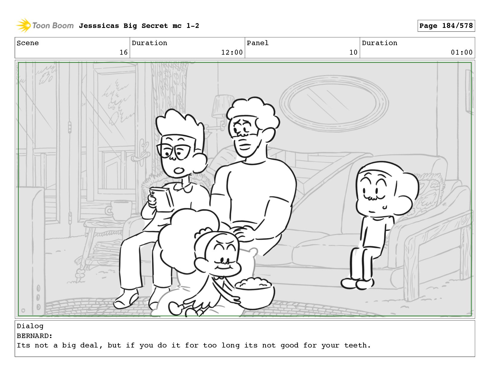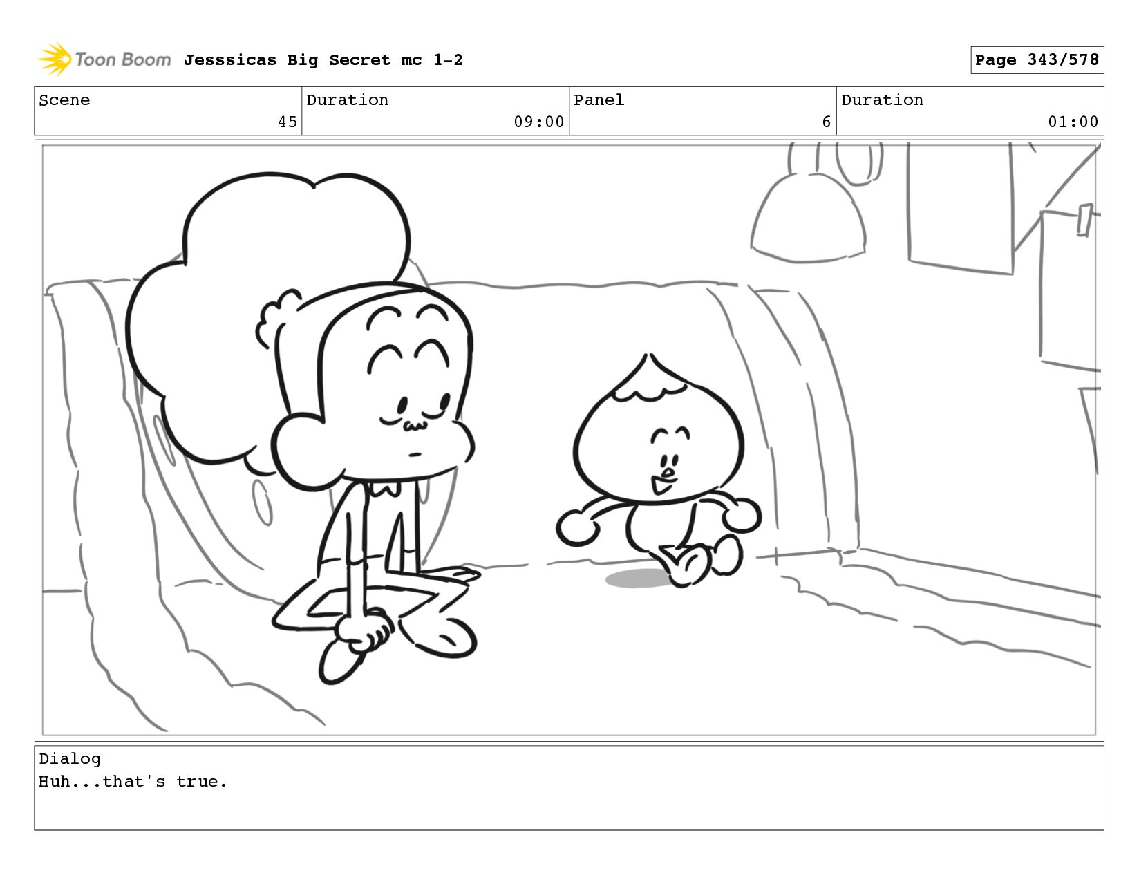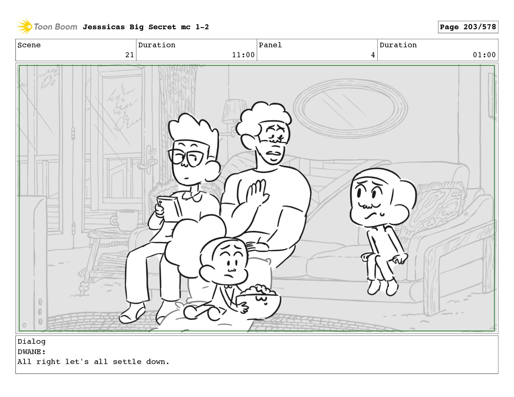Scene 1 Duration 11:00 Panel 6 Duration 01:00 Dialog <snickering>