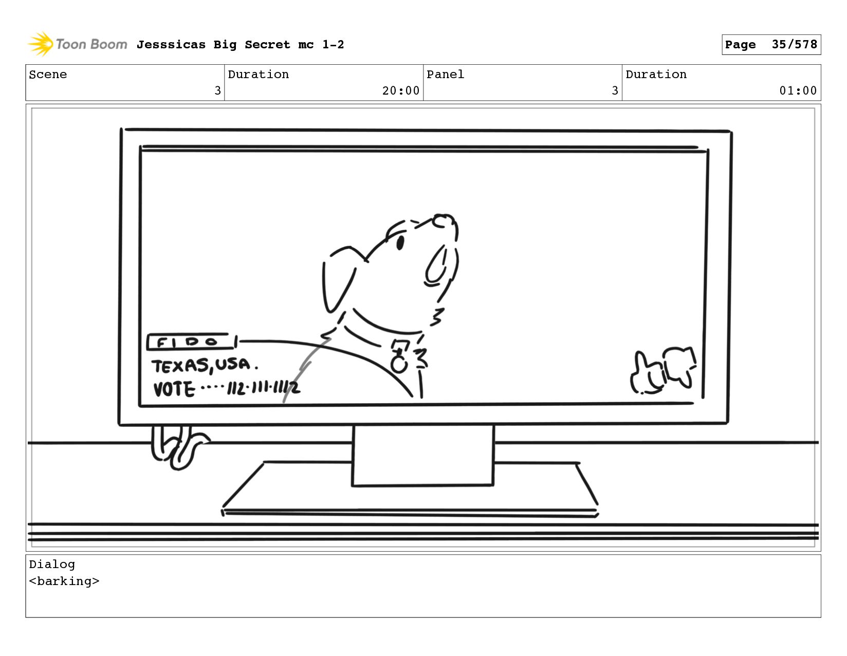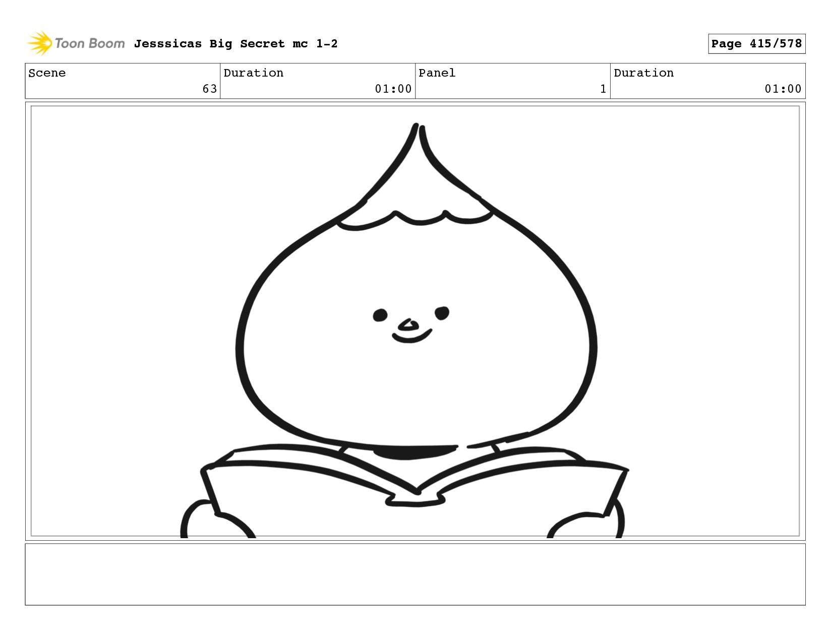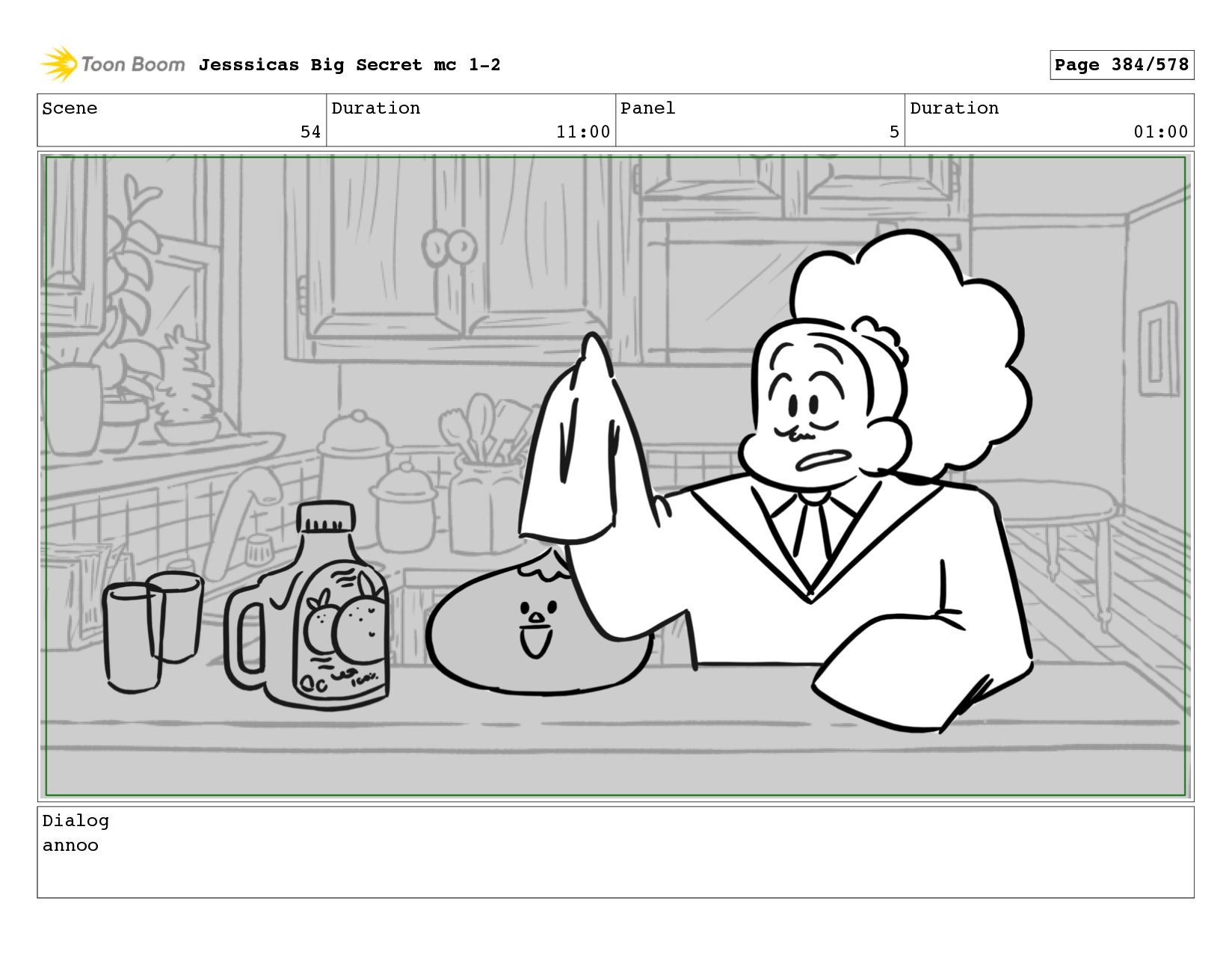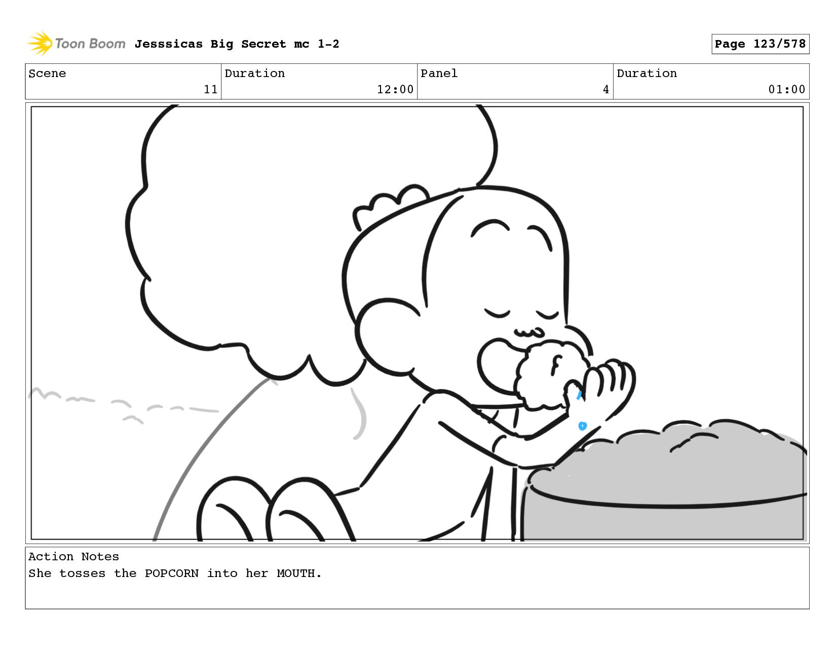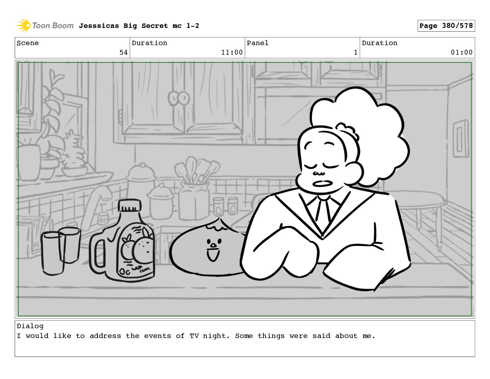 Scene 1 Duration 11:00 Panel 1 Duration 01:00 Action Notes