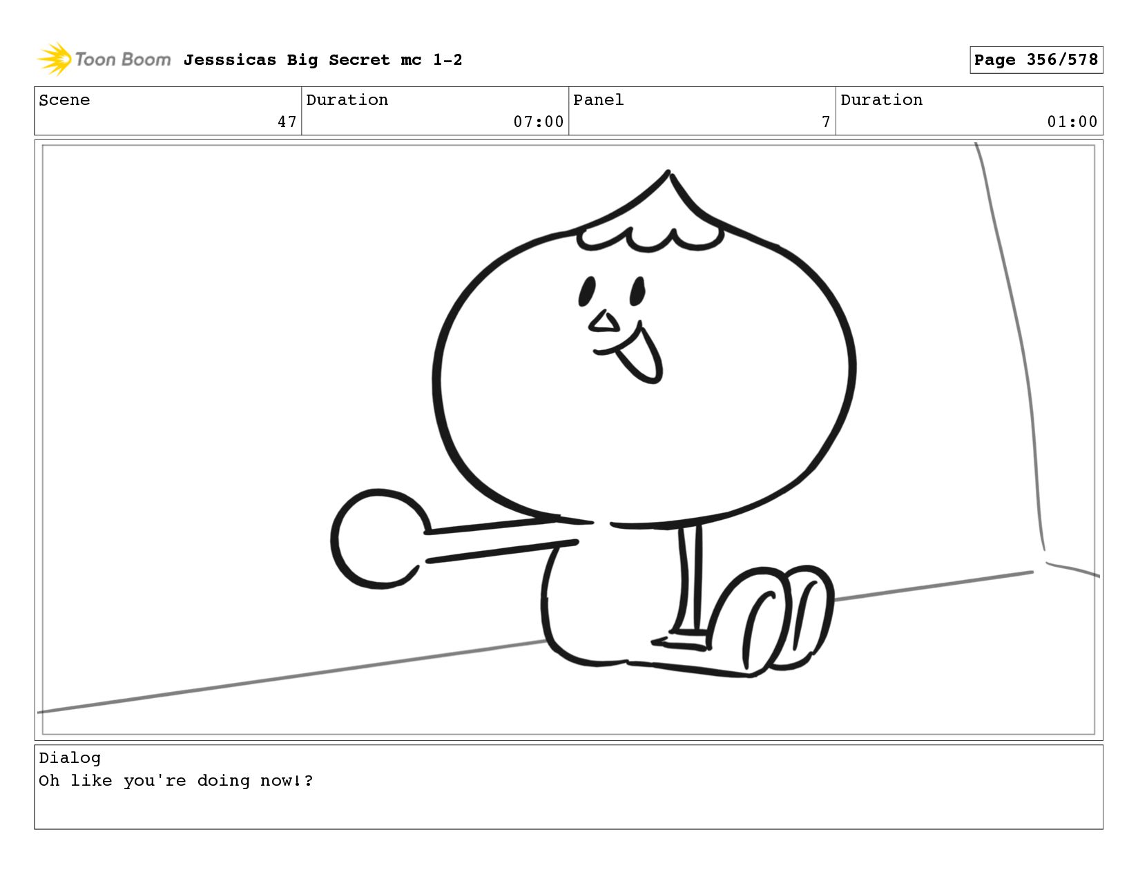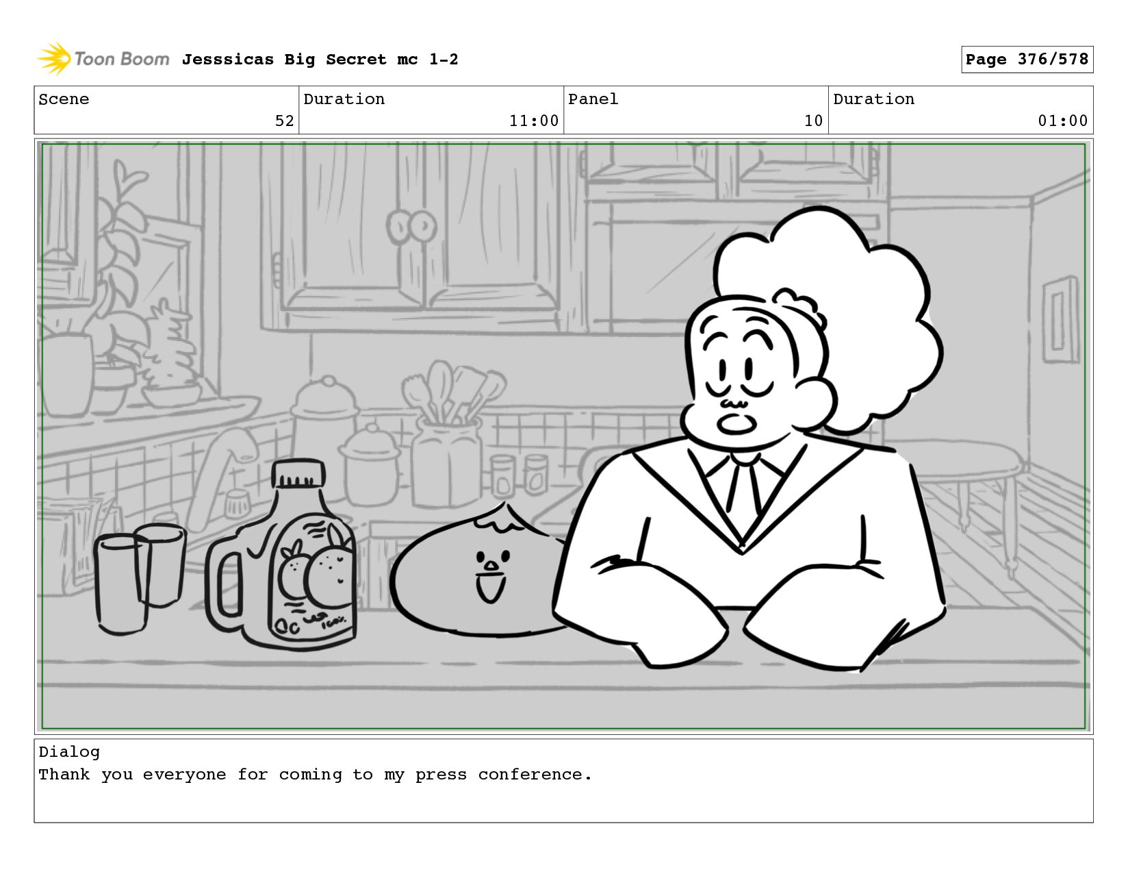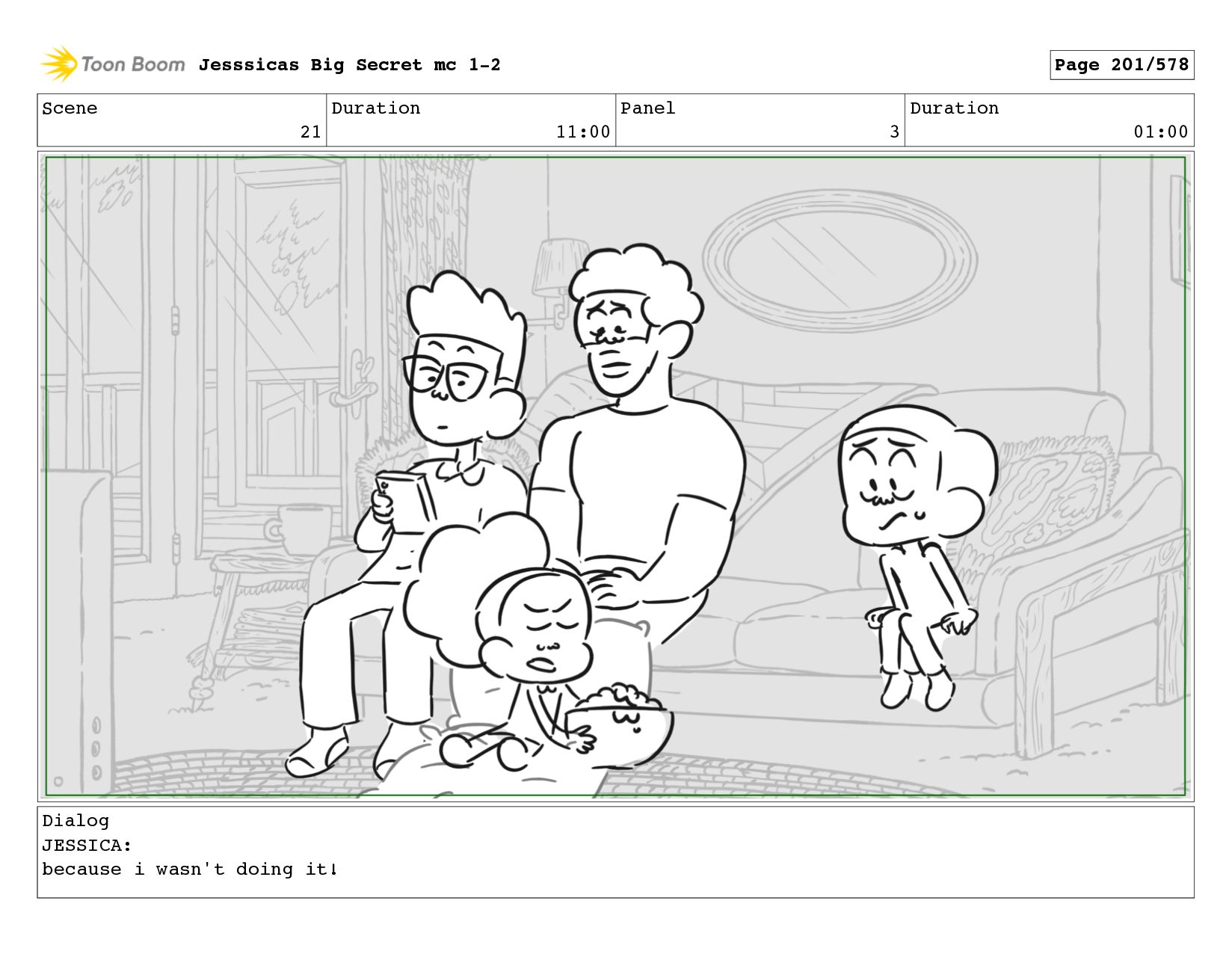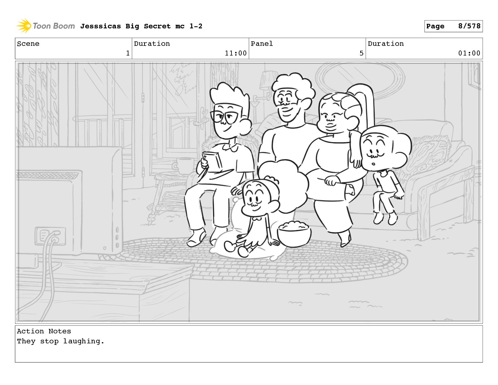 Scene 1 Duration 11:00 Panel 7 Duration 01:00 Dialog <snickering>