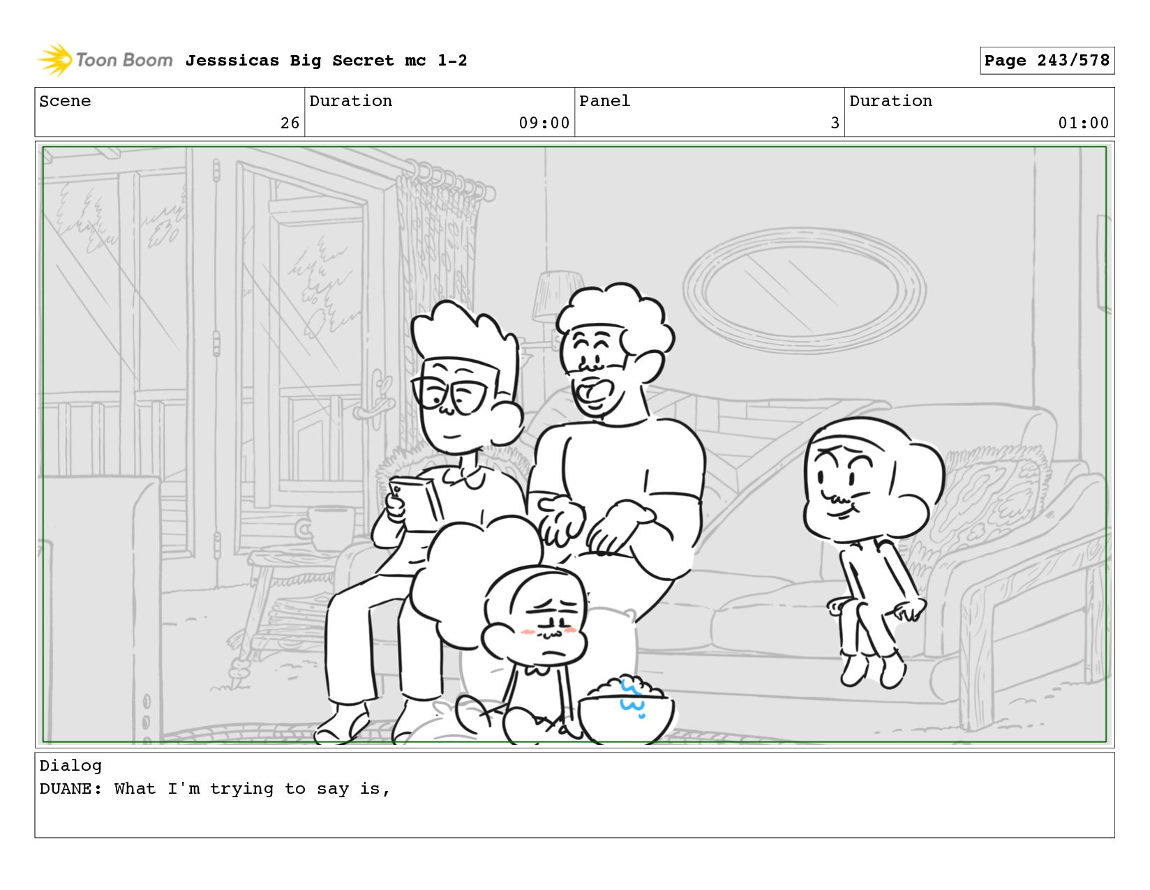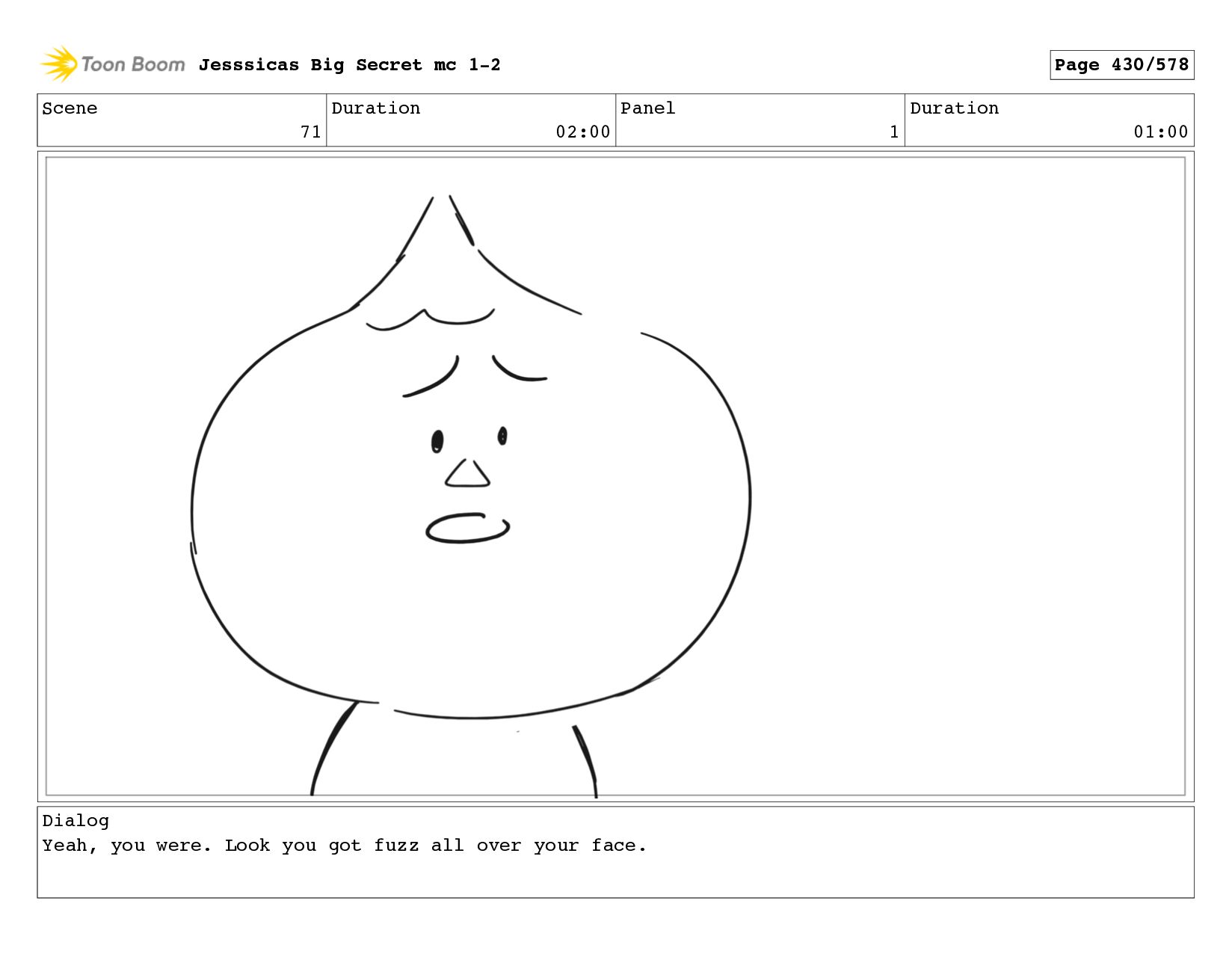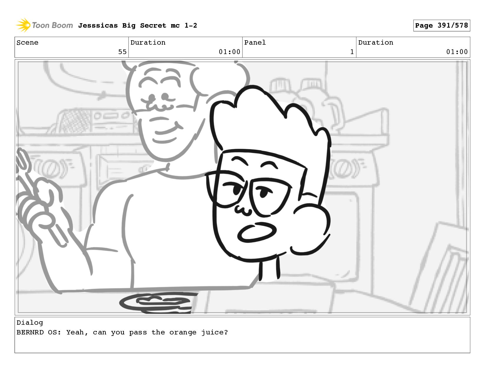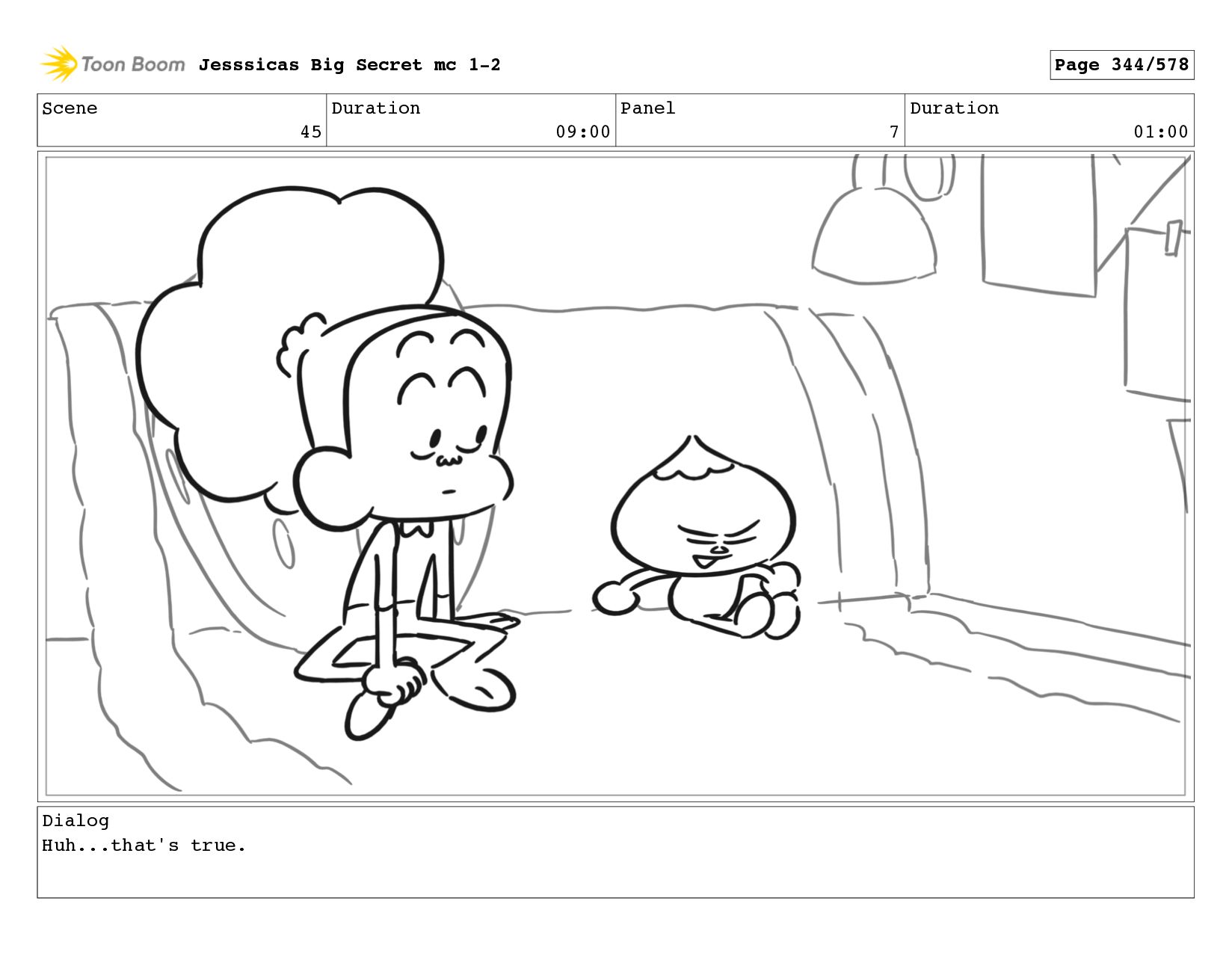 Scene 1 Duration 11:00 Panel 7 Duration 01:00 Dialog <snickering>