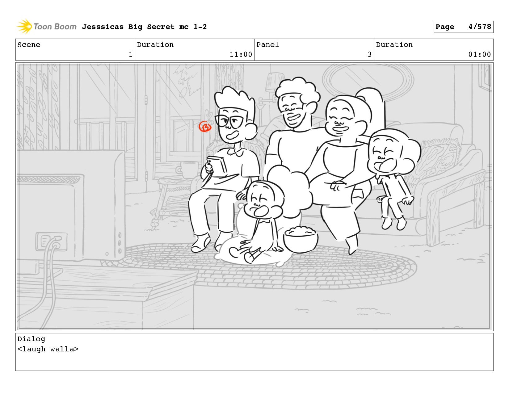 Scene 1 Duration 11:00 Panel 4 Duration 01:00 Dialog <laugh