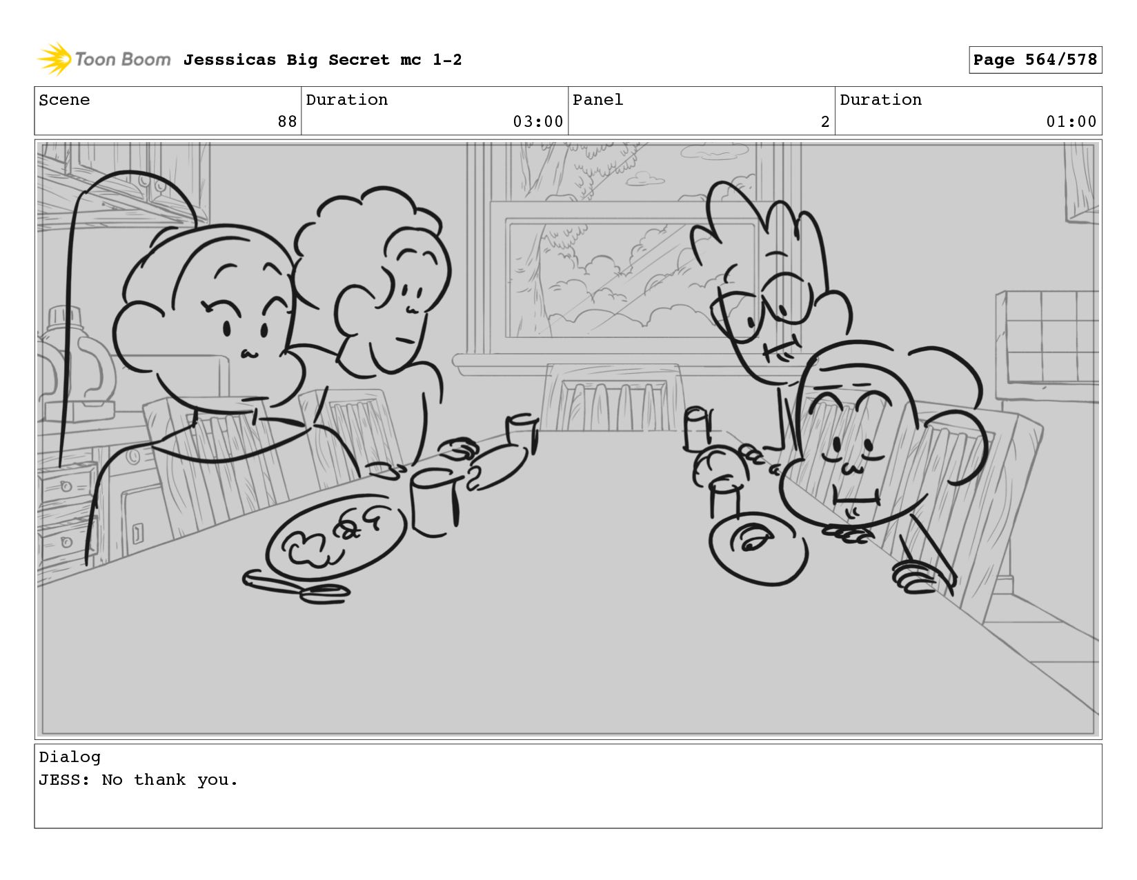 Scene 88 Duration 03:00 Panel 2 Duration 01:00 Dialog JESS:
