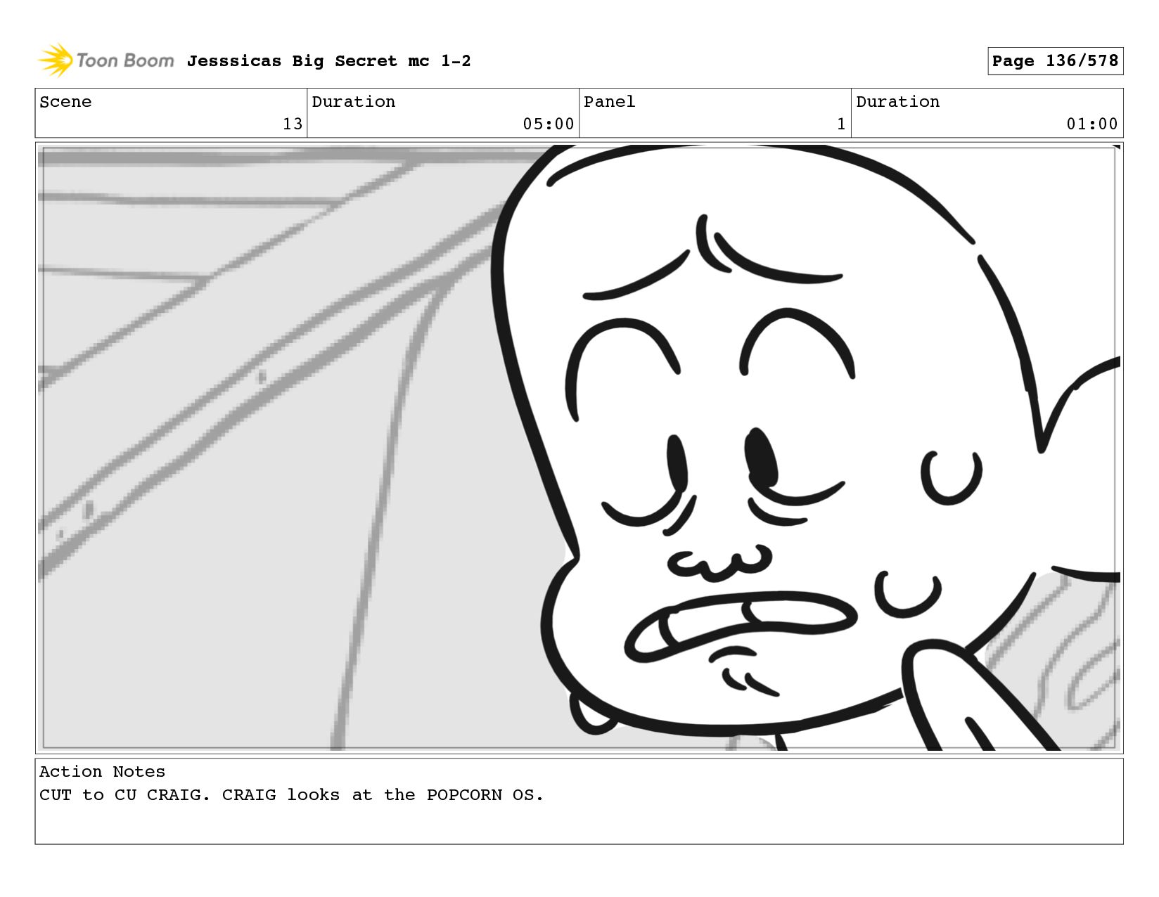 Scene 1 Duration 11:00 Panel 5 Duration 01:00 Action Notes