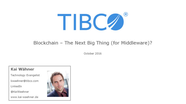 Keywords: blockchain, bitcoin, integration, middleware, event processing, streaming analytics, api, open api, api management, security, hyperledger, ethereum, blockchain as a service, BaaS, cloud, SaaS, Microsoft, Azure, Bletchley, open source, IBM, Bluemix, identity management, key management, cryptography, use cases, scenarios, internet of things, lazooz, OpenBazaar, Skuchain, Internet of Things, Smart Contract, ether, architecture, machine learning, big data, real time, analytics, software AG, tibco software, tibco, interledger