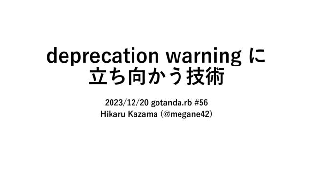 deprecation warning に ⽴ち向かう技術 2023/12/20 gotanda.rb #56 Hikaru Kazama (@megane42)