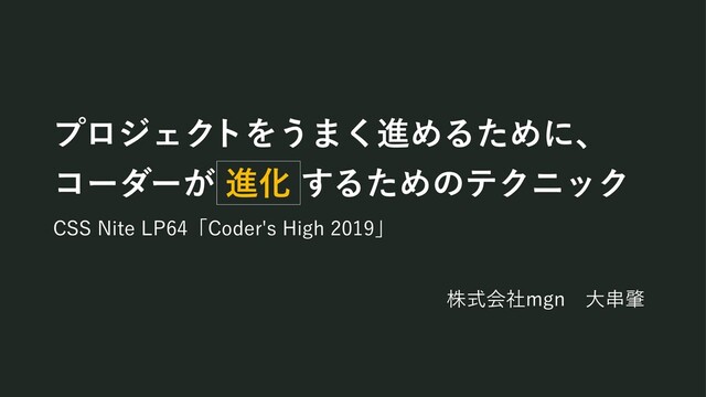 2019年10月19日に大崎ブライトコアホールで開催された、CSS Nite LP64「Coder's High 2019」にて登壇しました『プロジェクトをうまく進めるために、コーダーが進化するためのテクニック』のスライドです。