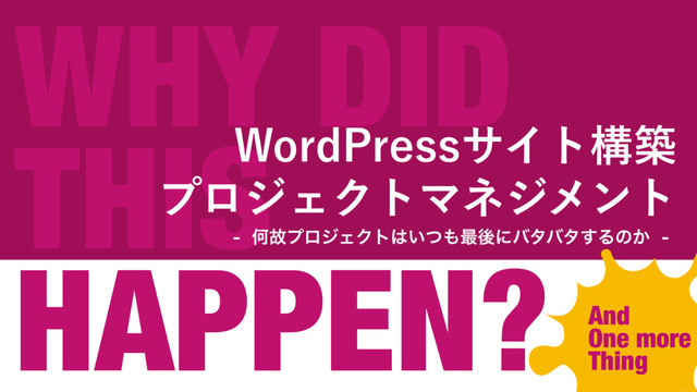 WHY DID THIS HAPPEN? ԿނϓϩδΣΫτ͍ͭ࠷ޙʹόλόλ͢Δͷ͔ 8PSE1SFTTαΠτߏங ϓϩδΣΫτϚωδϝϯτ And One more