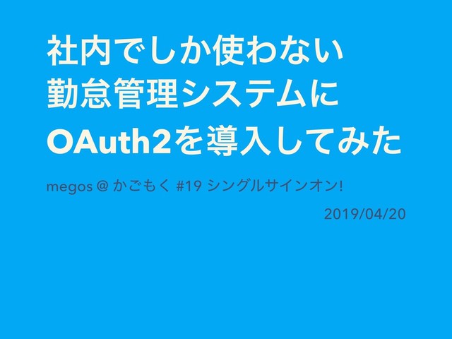 ࣾͰ͔͠Θͳ͍ ۈଵཧγεςϜʹ OAuth2Λಋೖͯ͠Έͨ megos @ ͔͘͝ #19 γϯάϧαΠϯΦϯ! 2019/04/20