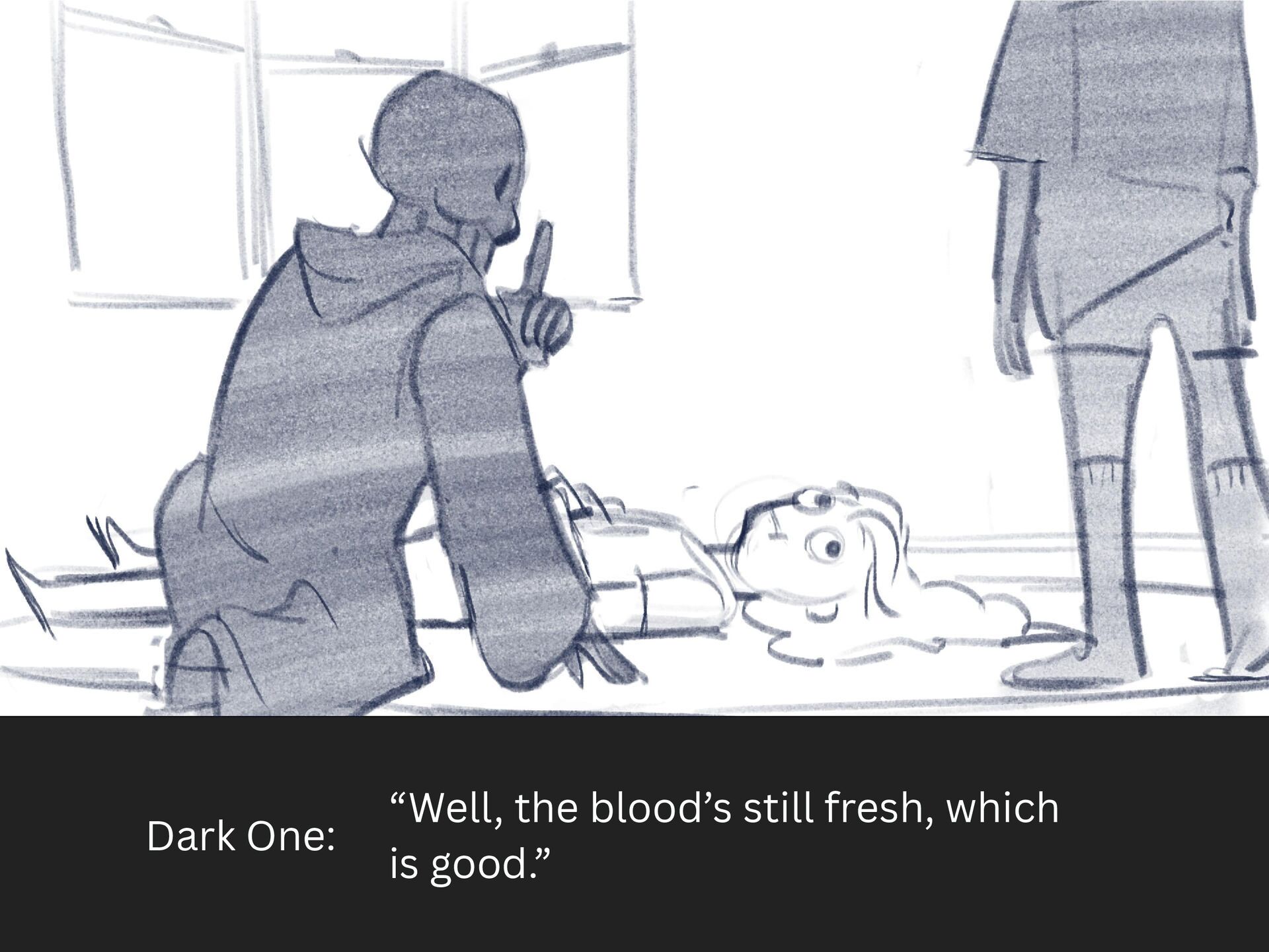 Dark One: “Well, the blood’s still fresh, which is good.”