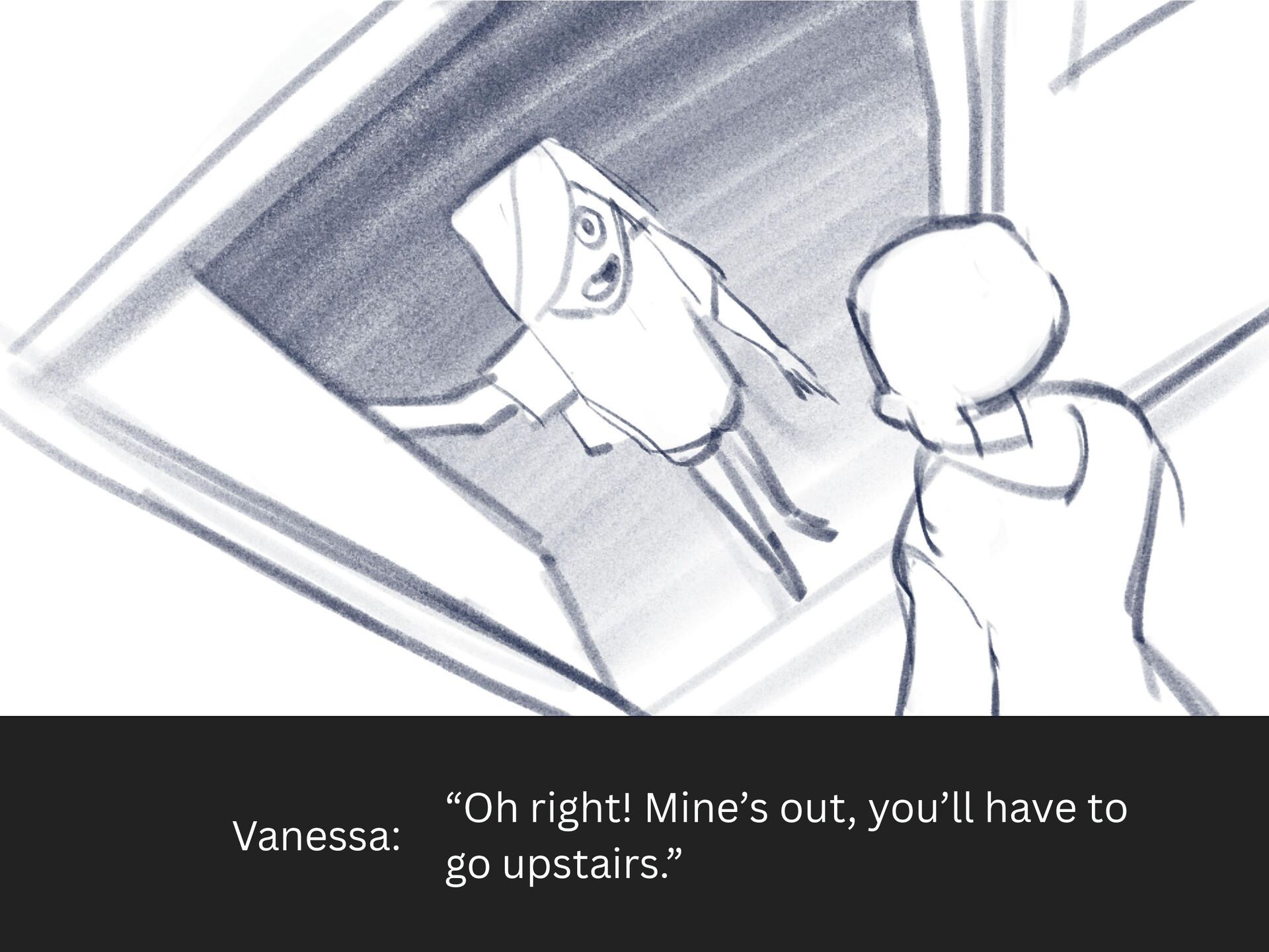Vanessa: “Oh right! Mine’s out, you’ll have to go upstairs.”