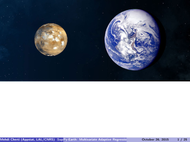 Mehdi Cherti (Appstat, LAL/CNRS) Supervised by Balázs Kégl (LAL/CNRS) and Alexandre Gramfort (CNRS LTCI) October 26, 2015 Mehdi Cherti (Appstat, LAL/CNRS) Supervised by Balázs Kégl (LAL/CNRS) and Alexandre Gramfort (CNRS LTCI) Py-Earth: Multivariate Adaptive Regression Splines ( MARS) in Python October 26, 2015 1 / 25