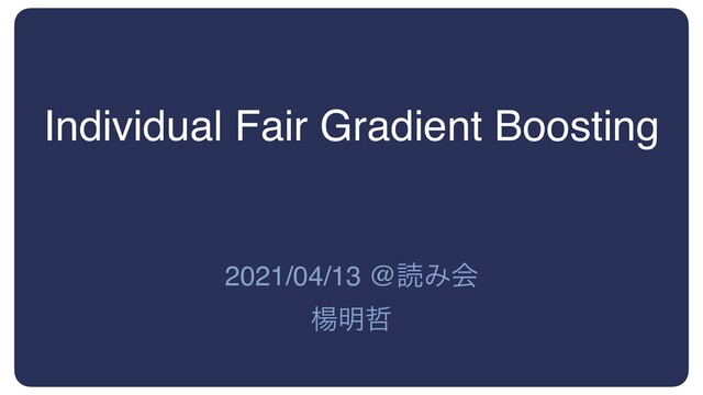 Individual Fair Gradient Boosting 2021/04/13 @ಡΈձ ༶໌